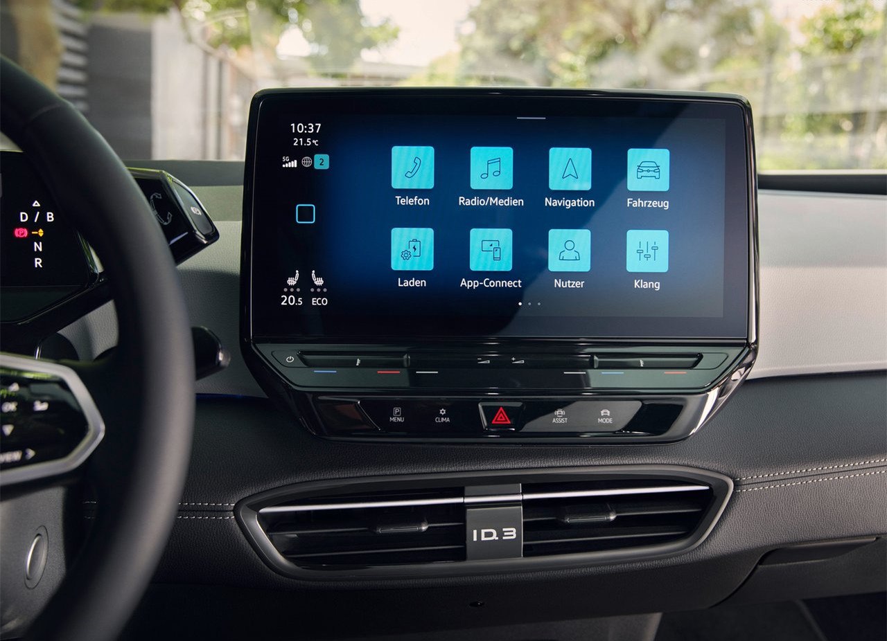 中期改款ID.3的液晶仪表依旧是5.3英寸,但中控屏幕则从10英寸升级到了12英寸,车机系统升级到了最新的版本,操作逻辑和UI设计都有改变。