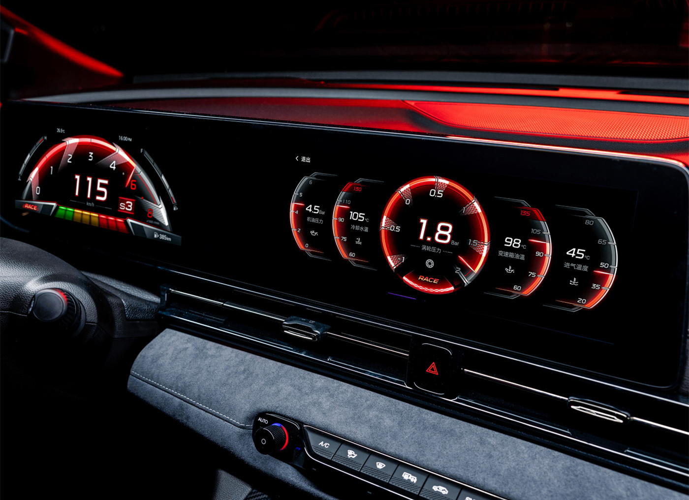 新车变换车机系统的UI主题,仪表增加了换挡提示功能。中控屏可以显示涡轮压力、机油温度、机油压力、水温、进气温度等信息。