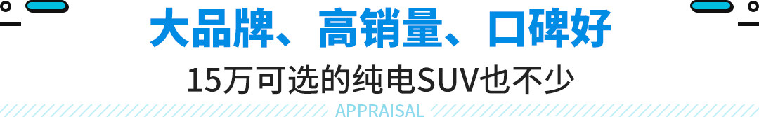 我国新能源汽车的发展已经位于世界前列,但同时这也意味着新能源市场内卷程度已经十分严重。比如对于城市穿梭需求、日常代步的话,一款15万左右的纯电SUV便完全可以满足了,而目前国内这类产品还不少,且销量、口碑、品牌、性价比都可圈可点,今天我们就来看几款这样的车型。