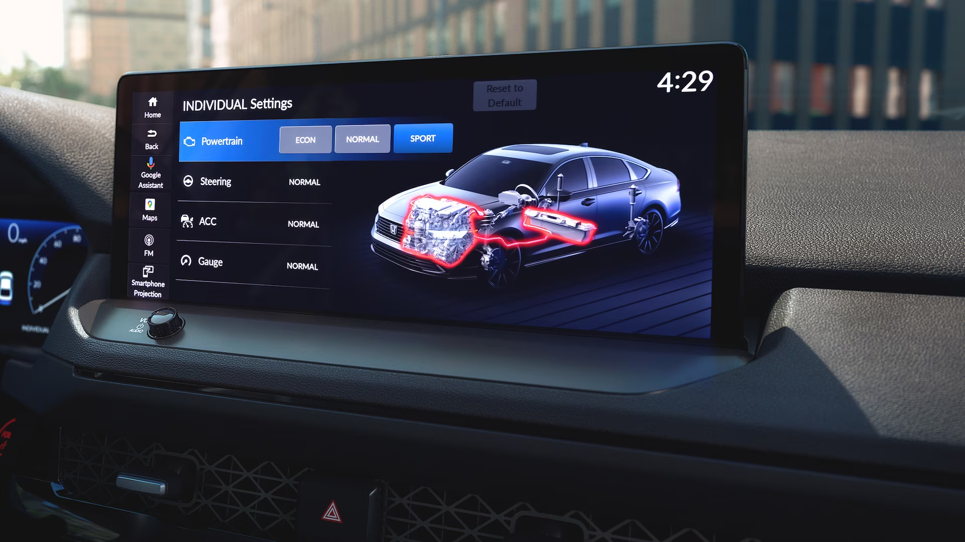 与外观一样,十一代本田雅阁的内装布局与新一代本田思域高度相像,采用简约的横向布局,配备三幅式多功能方向盘、液晶仪表盘、悬浮式中控液晶屏幕等等。