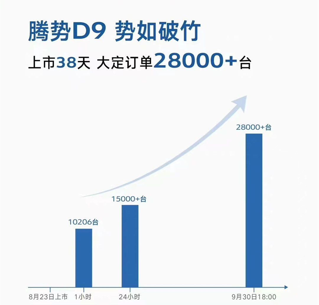 D9在上市的时候,累计订单就已经接近5万辆,但由于等待交付时间较长,所以后来有部分客户退订,但尽管如此,目前还有存有3.5万+的订单,可见腾势的产品已经得到了肯定。