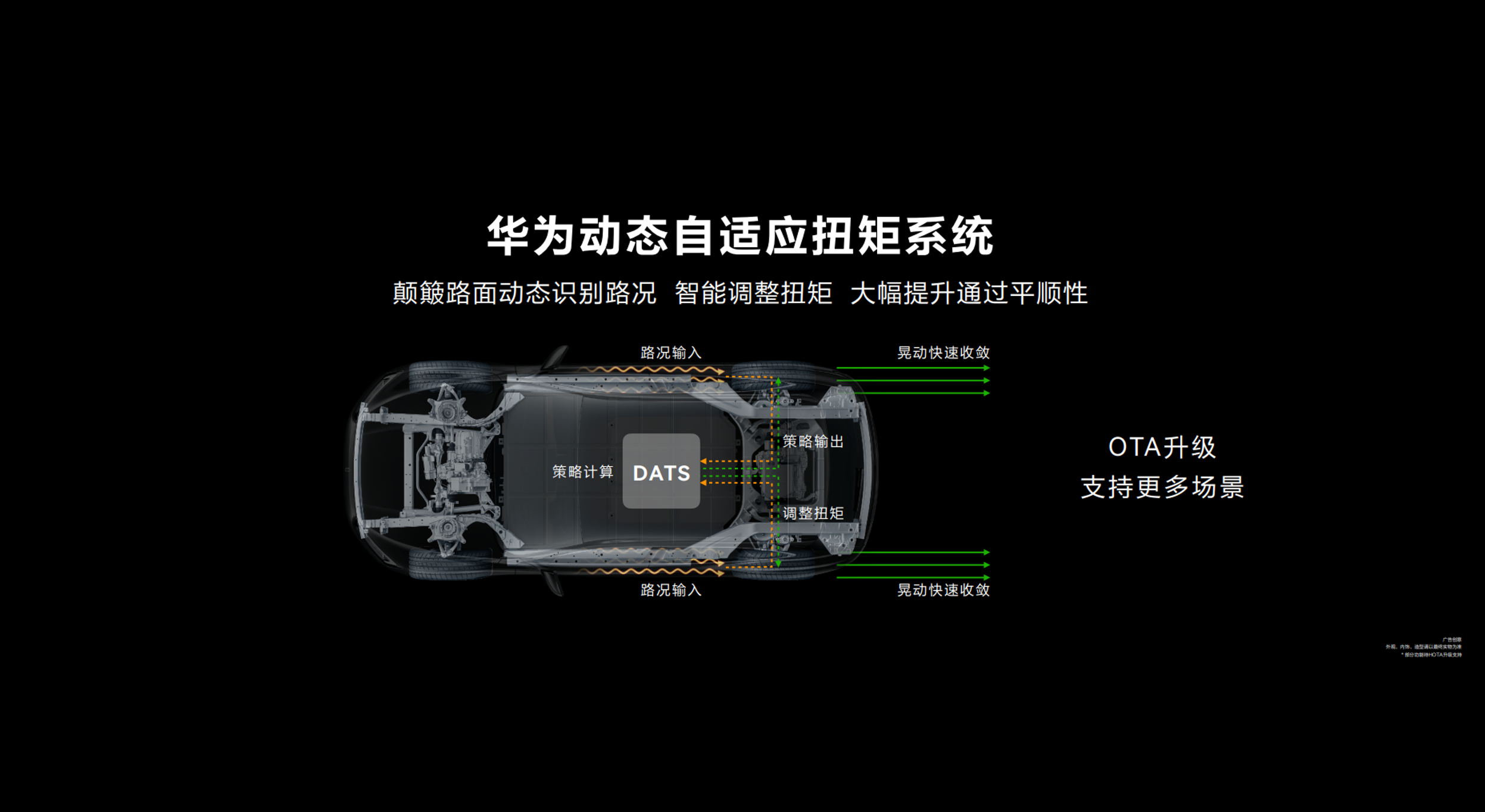 华为问界M5 EV首次搭载华为自研的HUAWEI DATS动态自适应扭矩系统,一方面提升了车辆的驾乘舒适性及操控,提升了在颠簸路面的稳定性并带来更顺畅的弯道表现,另一方面,整套系统还采用动力线性化设计,DATS系统通过动态降低电机功率,从而降低整车能耗,更省电。