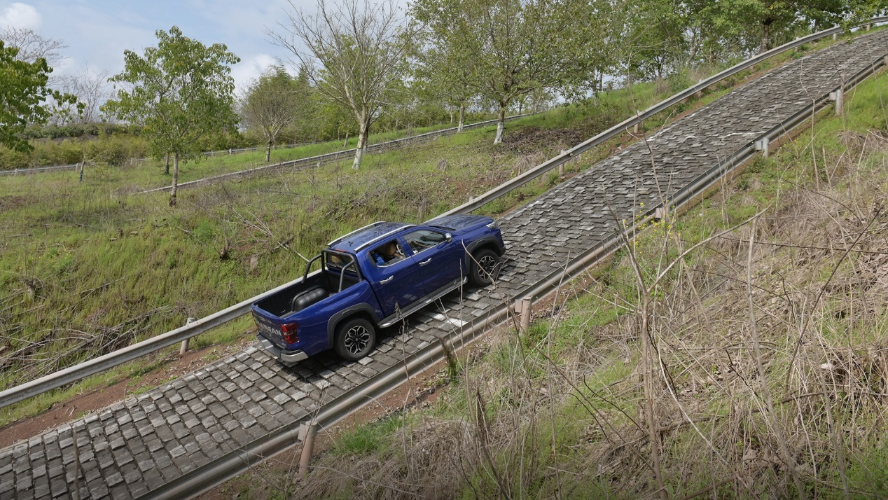 此次极限坡道挑战要求攀爬坡度超60%的极限坡道,这对车辆动力持续输出的平稳性和车身的稳定性提出严苛要求。