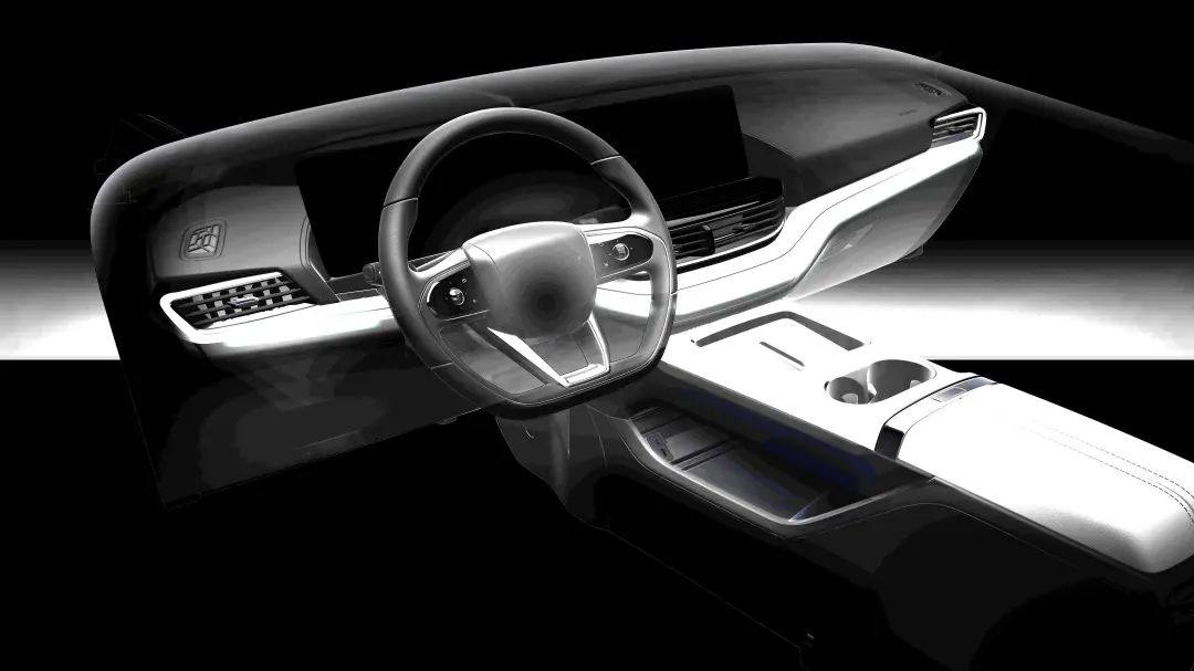 内饰目前只有预告图,乍一看与奇瑞新能源的大蚂蚁布局很像,配备悬浮式双联屏设计,下面是空调出风口,再往下就是一条银色镀铬条贯穿整个中控台。