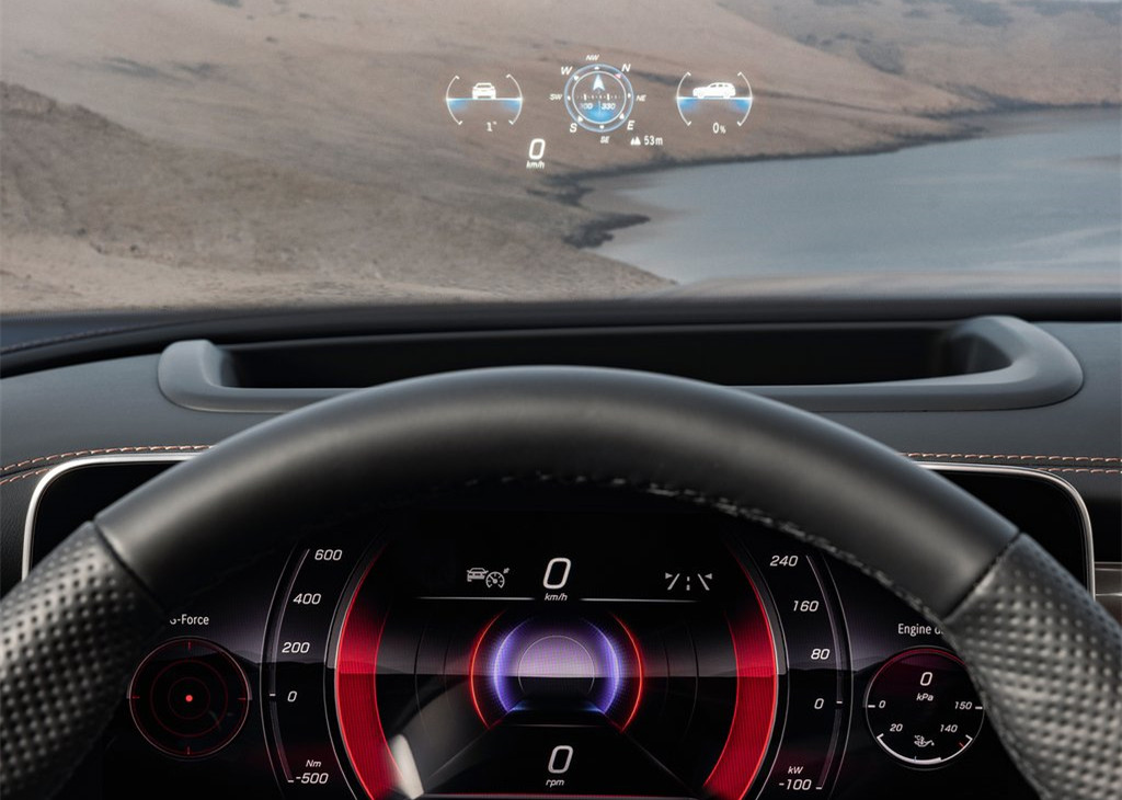 GLC轿跑底盘采用了前四连杆、后多连杆的独立悬架,整体表现会GLC比更运动。并标配新一代的4MATIC四轮驱动系统,车机可以显示车在地形中的实时位置和前轮转向角度。