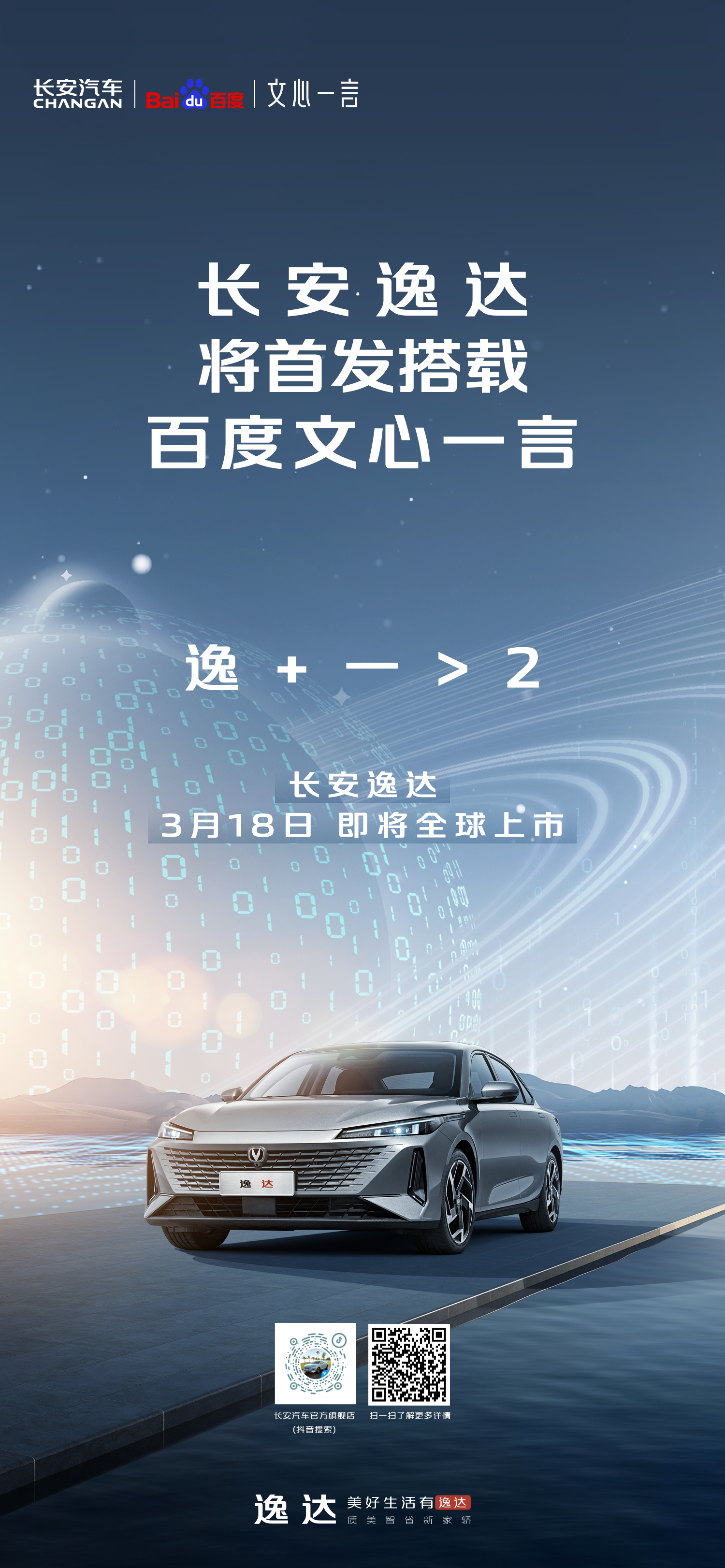 此次长安逸达携手百度“文心一言”,将进一步释放“逸+一>2”效应,开启未来出行新体验。3月18日,逸达全球上市,“质美智省新家轿”即将正式登场。