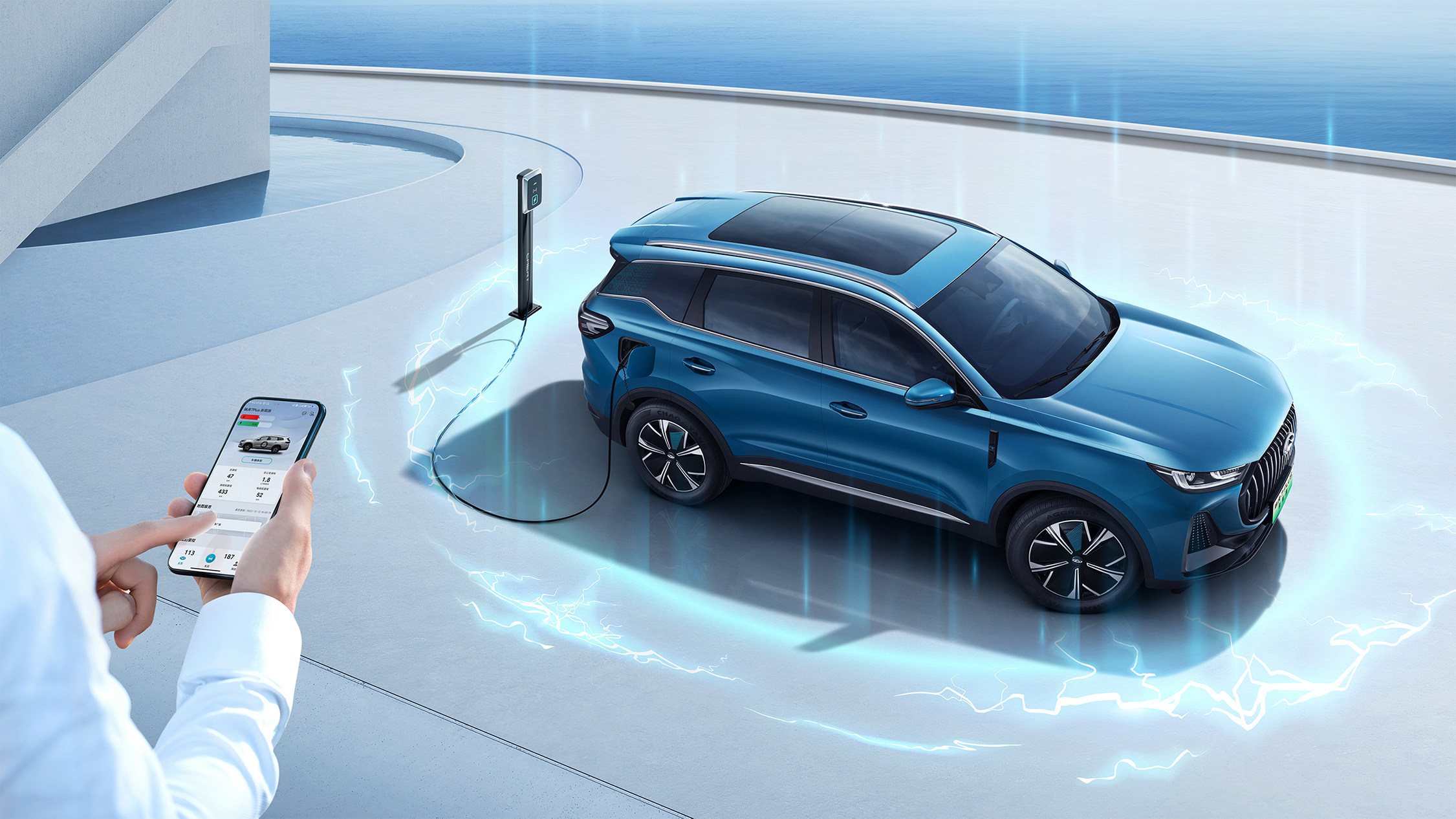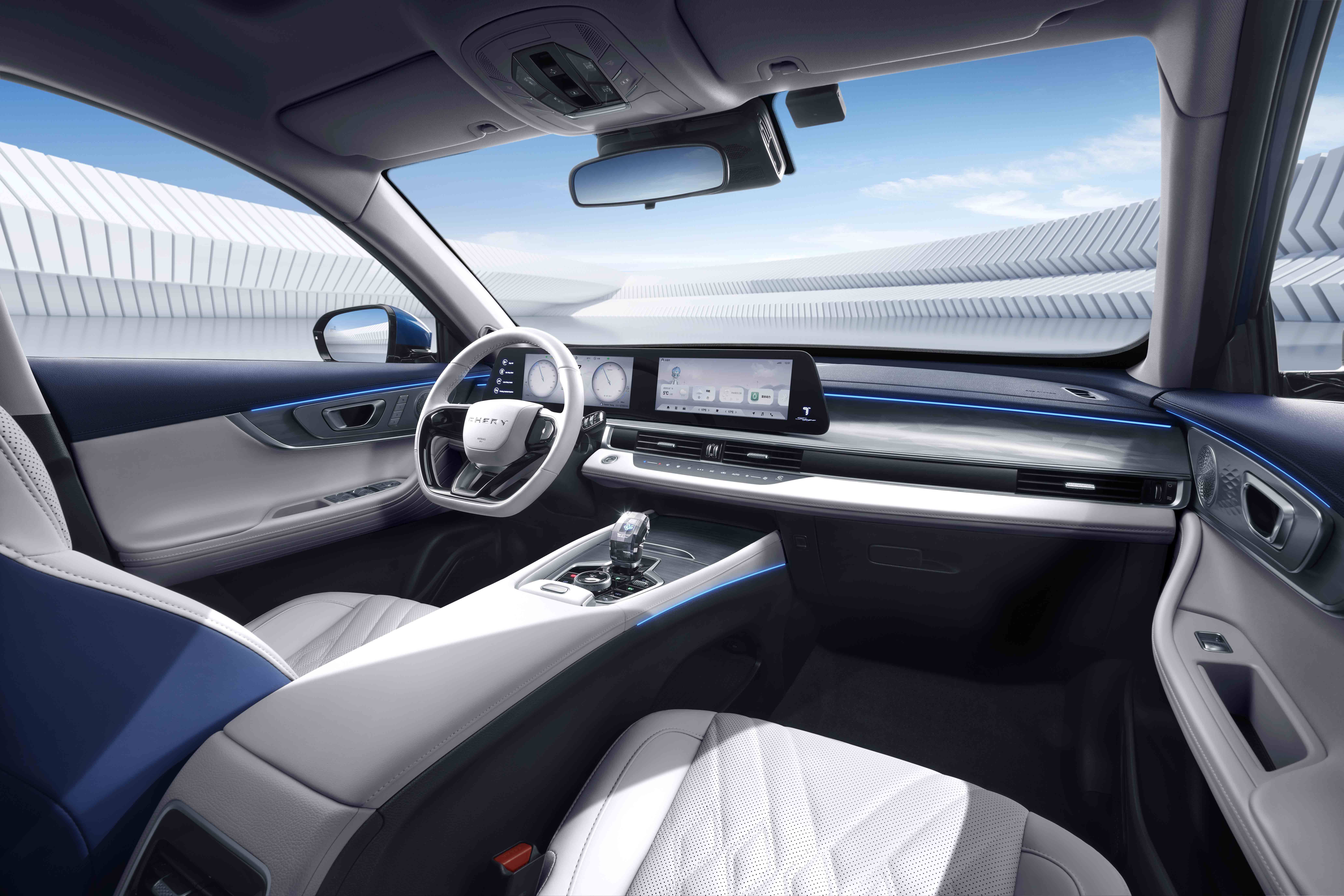 外在吸睛,内在则强化用户享受。瑞虎7 PLUS 新能源采用活力蓝米双色内饰,兼具科技感与豪华感。一体式运动仿皮座椅,具有良好侧向支撑力与乘坐舒适性,运动质感十足。水晶钻石换挡把手绽放璀璨视觉,时刻将动感拉满。8扬SONY定制豪华音响搭配64色音乐律动氛围灯,将唯美设计与功能完美交融,为用户带来身临其境的影音娱乐体验。同时,主/副驾遮阳板带化妆灯极具人性化,对女性彰显了细腻贴心的一面。令人惊喜的是,新车还搭载50W手机无线充电,让用户的手机随心一放便能“秒回血”。总而言之,瑞虎7 PLUS 新能源每处智慧细节,都是对用户最体贴的关心,让用户尽享“好听、好看、好美、好快”的多维科技体验。
