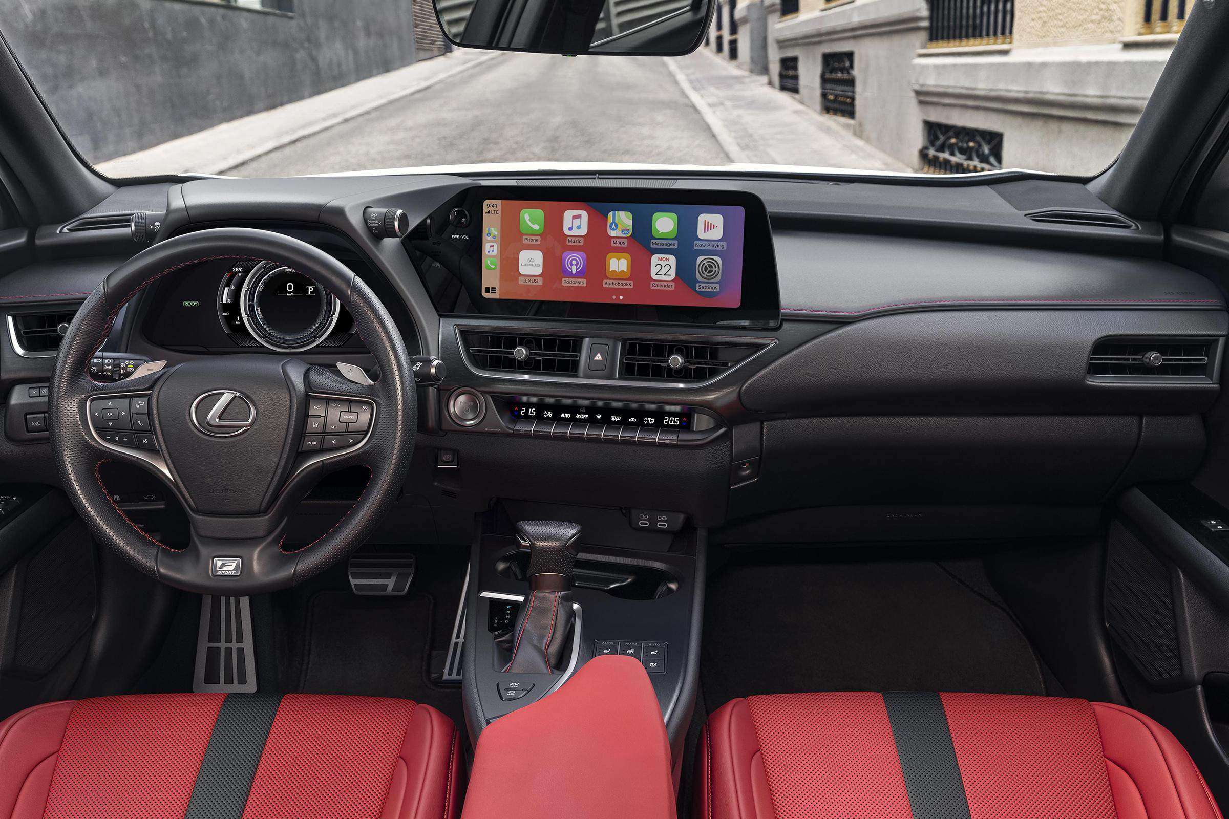 同样是以类似大嘴样式的大尺寸梯形进气孔取代了雷克萨斯标志性的纺锤式前进气格栅,但同样极具辨识度的L型日行灯则保留了下来,不过整体前大灯组却较为简约,可能是出于入门级定位的缘故。