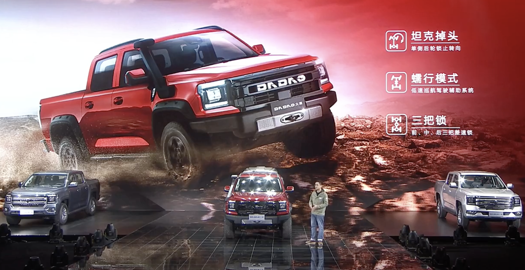 在品牌发布会当天还发布了旗下首款皮卡车型,将提供越野版、乘用版和商乘版可选。据悉,紧接着还将会推出纯电版本。不同版本之间的设计风格以及定价都大不相同,新车也将于4月份举办的上海车展期间开启预售。