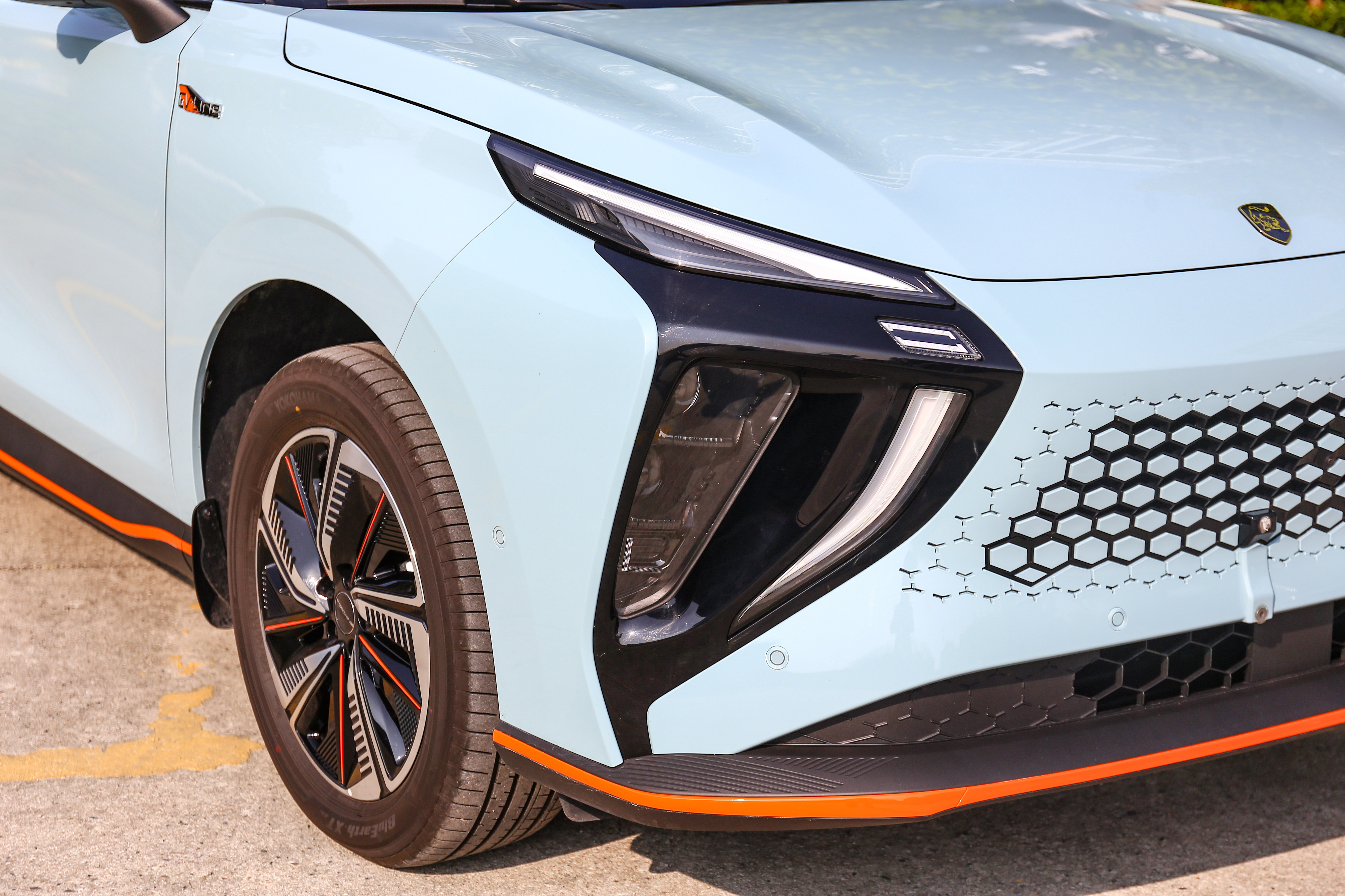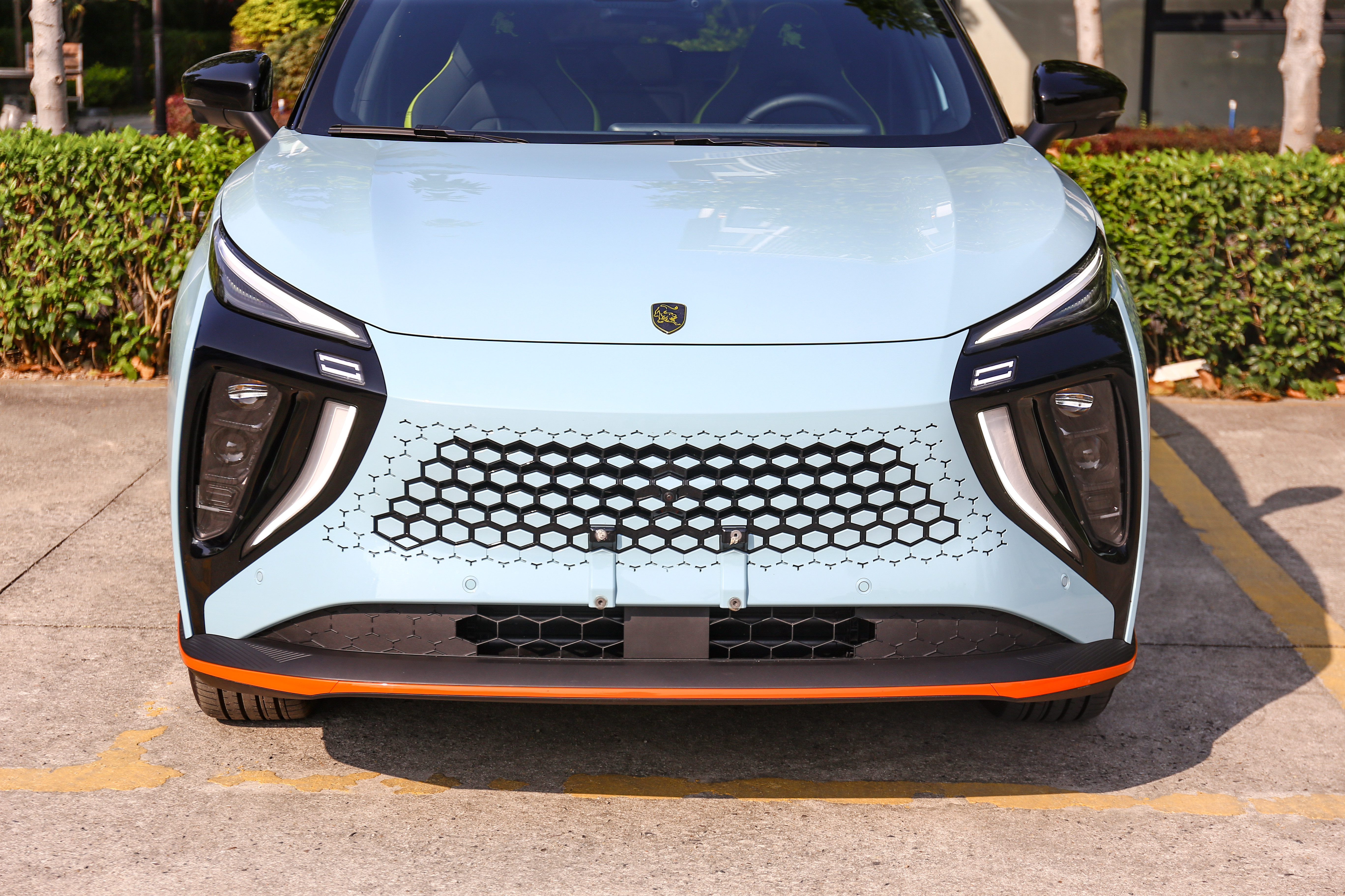 新车的前脸采用纯电动车惯用的封闭式前脸设计手法,无边框的格栅造型具有强烈的新鲜感,有种不与世俗同流合污的感觉,显得十分独特。
