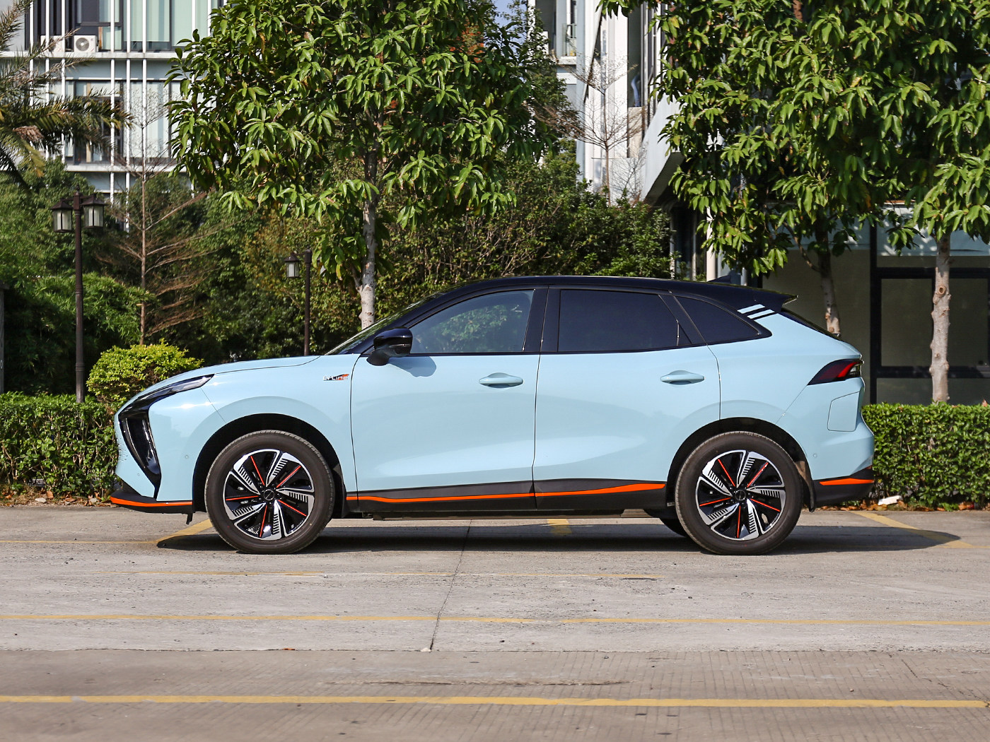 来到车侧,新车车身造型简约,采用主流的双色车身设计,更能凸显年轻气息。