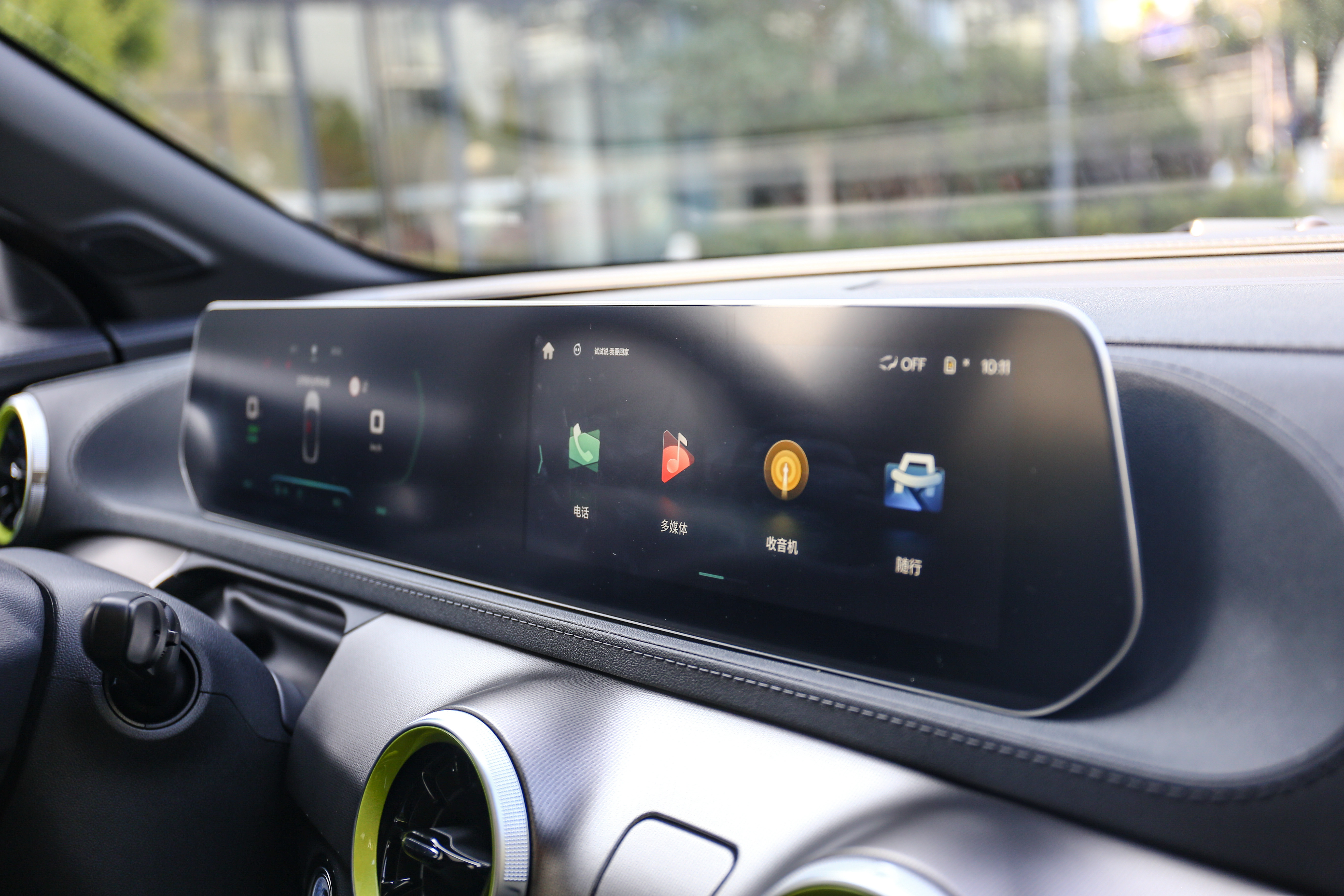 新车配有简约双联屏设计,内置腾讯HMI2.0交互系统,因此带有丰富腾讯生态资源,如微信、腾讯地图、QQ音乐等常用功能。
