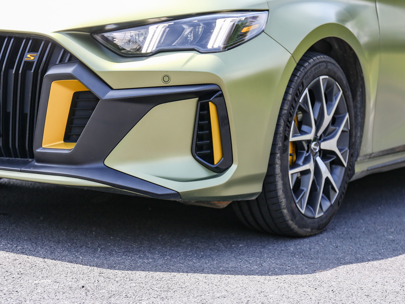 两侧前大灯内部的LED灯组细节更为吸睛,细长锐利的造型带来如豹子般的压迫感,成为整台车的点睛之笔。