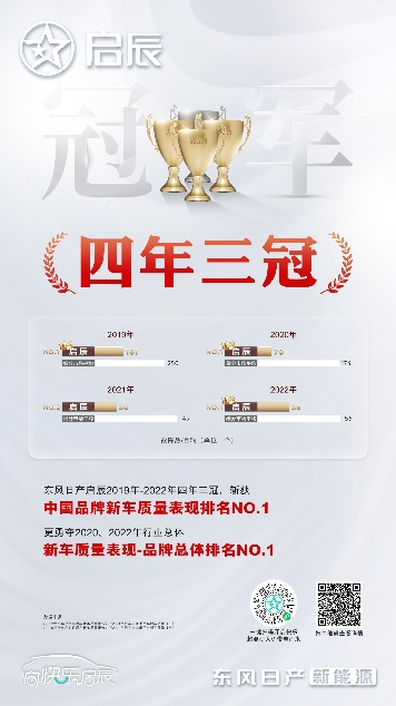 在不久前发布的2022年度《汽车之家乘用车新车质量报告》中,东风日产启辰再度强势霸榜,荣获中国品牌新车质量表现TOP1、行业总体新车质量表现TOP1双料冠军,实现“四年三冠”的品牌殊荣,而这也正是启辰品牌以品质让消费者安心的体现。