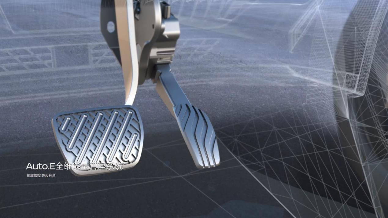 配备的Auto.E单踏板系统,可以让一系列繁杂的操作变得简单。这套系统可以依据场景需求及工况特性,智能匹配加减速算法,同一踏板实现加减速的顺滑切换,简化驾驶操作,特定场景操作频次减少50%,舒适性提升30% 。
