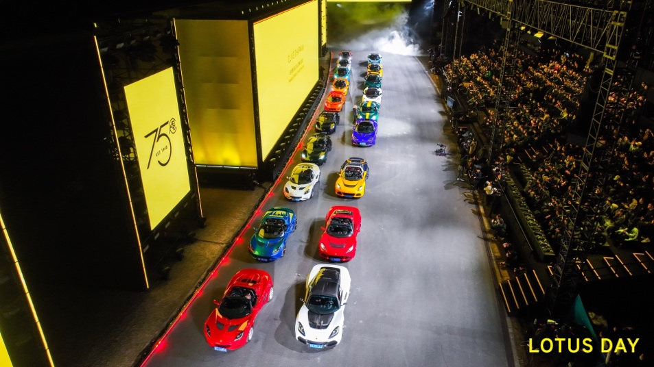 夜幕降临,路特斯标志性的“冠军黄”闪耀上海国际赛车场。曾经享誉世界的Mark I、Eleven、Type 99T三款经典车型,以复刻车的形式亮相,令车迷大饱眼福,与路特斯Emira、Eletre、Evija一同演绎路特斯从过去到未来始终如一的革新精神。在全国唯一的F1赛道上,路特斯经典车型 Evora、Exige、Elise、007经典传奇座驾Esprit首度集结,极具辨识度的车身及引人瞩目的色彩点亮了这个夜晚。引擎发出阵阵轰鸣,令人心潮澎湃,路特斯中国车主亲自驾驶爱车,在赛道上呼啸而过,极速驰骋,引发观众的欢呼,将全场激情点燃。夜色之下,无人机组成的“75”与“Eletre”熠熠生辉,致敬路特斯品牌75周年冠军荣耀、致敬路特斯中国车主,更彰显品牌加速驶入全新赛道一往无前的速度。对于路特斯品牌及中国车主而言,这注定是一个将被载入品牌史册的不眠之夜!