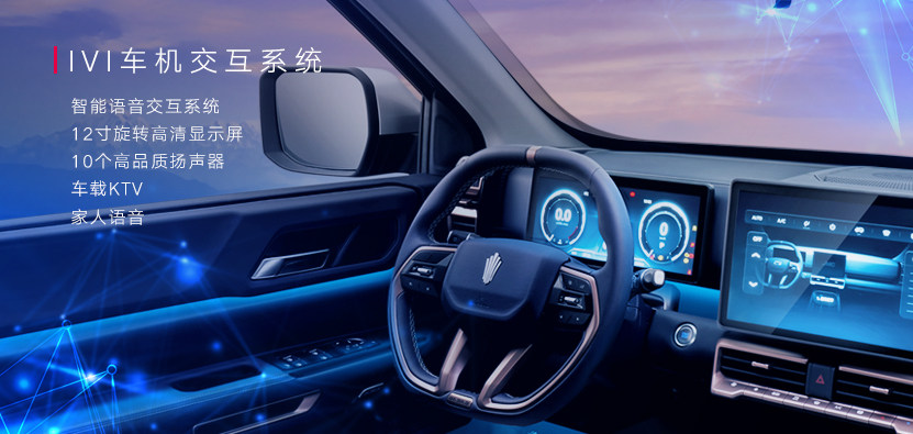 内饰对于一台皮卡来说十分精致,多处使用软质包覆和金色装饰点缀。12英寸的车机屏幕可以左右倾斜,系统内置了全景影像、百度地图、KTV、语音控制、无线充电等多种功能,还可通过语音控制,实现无人机探路功能。