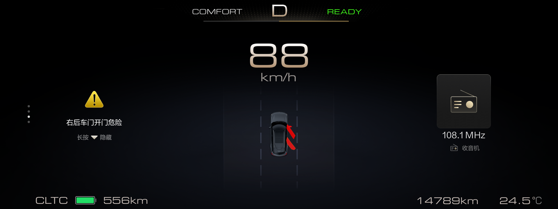 车主李先生更是直言像换了一辆车,主驾显示屏上会实时出现道路和车辆的识别情况,其他车辆会显示成白色,能区分公交车和小汽车,自动巡航,车道保持,前车刹车3秒内启动自动跟随,开起来感觉完全换了一辆车,太爽了。另外升级后电耗下降了好多,市区开只有十点几。