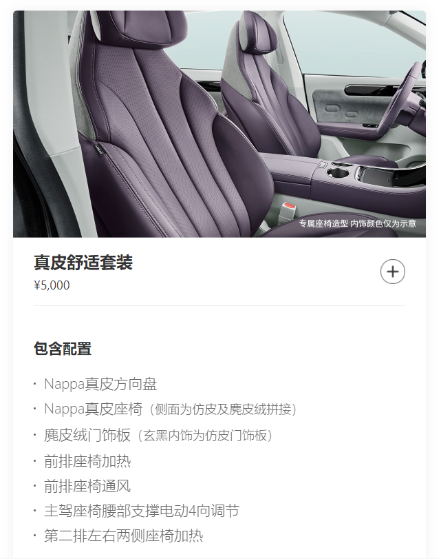 值得一提的是,由于玄黑套装自带真皮舒适套装,因此选装这一配色套装需要额外加5000元选装,其它内饰配色也可以根据自身需求加钱选装真皮舒适套装。
