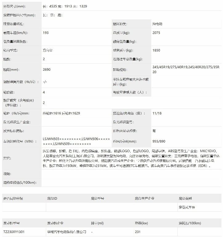动力方面,新车将推出高低功率单电机版本和双电机版本,其中,单电机版采用后置后驱布局,搭载一台永磁同步电机,低功率版本最大输出功率为231千瓦;高功率版本最大输出功率为250千瓦。而双电机版本将搭载前后双永磁同步电机,拥有电动四驱,前轴电机最大输出功率为150千瓦,后轴电机最大输出功率为250千瓦。