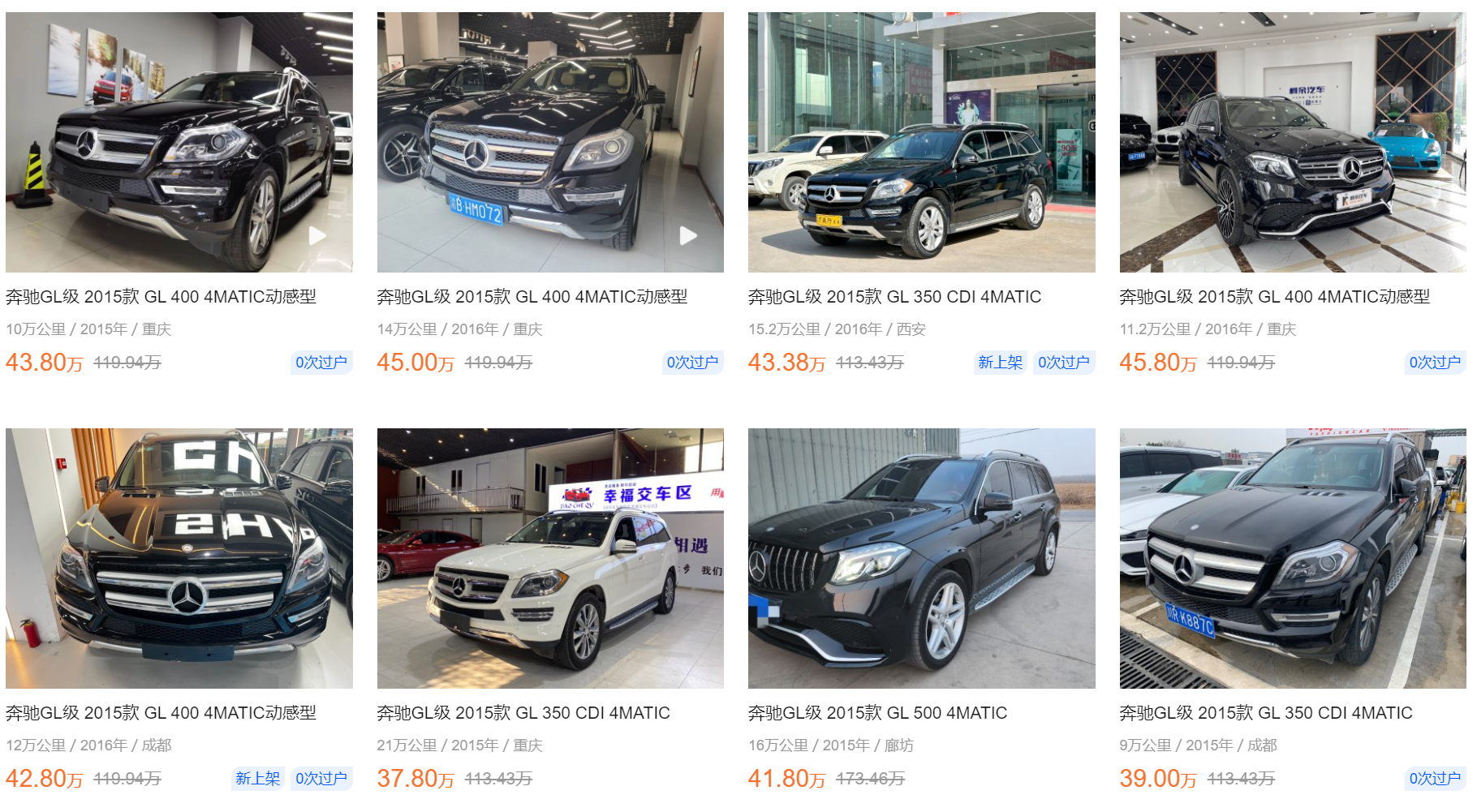 此外,奔驰GL作为北京BJ90的“原型车”,它的二手车市场行情更是普遍在40万-50万元之间,而它们里程数大多超过了10万公里。