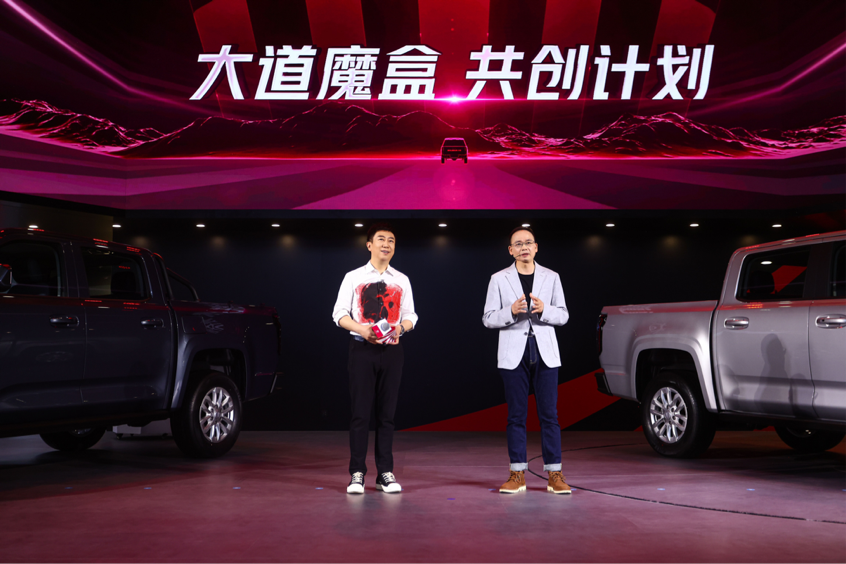 在发布会现场,江铃大道为用户展示了全球首创的大道魔盒——通过上下解耦、自由组合的方式重构皮卡后斗 2.4 ㎡的极致空间美学,实现后斗从单体结构到空间矩阵的进阶升维,让每一次的组合都能打开无限精彩,承载万千热爱,让皮卡真正成为一辆生活者之车。同时,活动现场正式发布大道魔盒共创计划,每一位对皮卡后斗有着奇思妙想的用户,都可以在微信“同道中人”小程序上留下想法,官方会选出最有代表性的方案并实现最终量产。并对方案被采纳的用户免费赠送大道魔盒。