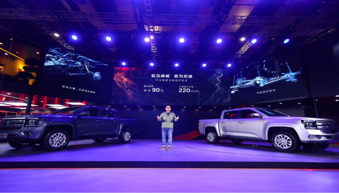 底盘方面,大道搭配多连杆与瓦特连杆后悬系统,将性能级配置纳入标配,使车辆横摆晃动幅度降低90%,大幅提升皮卡驾乘舒适度;同时,220 毫米的悬挂行程同级最优,极大提升皮卡通过性,给消费者带来堪比豪华车的驾乘表现。