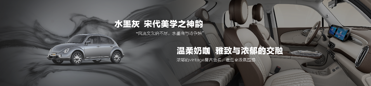 追求极致的意蕴美,芭蕾猫从千年宋瓷中汲取灵感,以淡雅纯粹的东方色彩,赋予车辆穿越千年的浪漫优雅。延续中国美学巅峰的宋代审美,2023款欧拉芭蕾猫特别推出了水墨灰全新车色,以清雅端庄的意蕴诠释东方雅韵。内饰新增极具质感的奶咖撞色,温柔复古,氛围感拉满。
