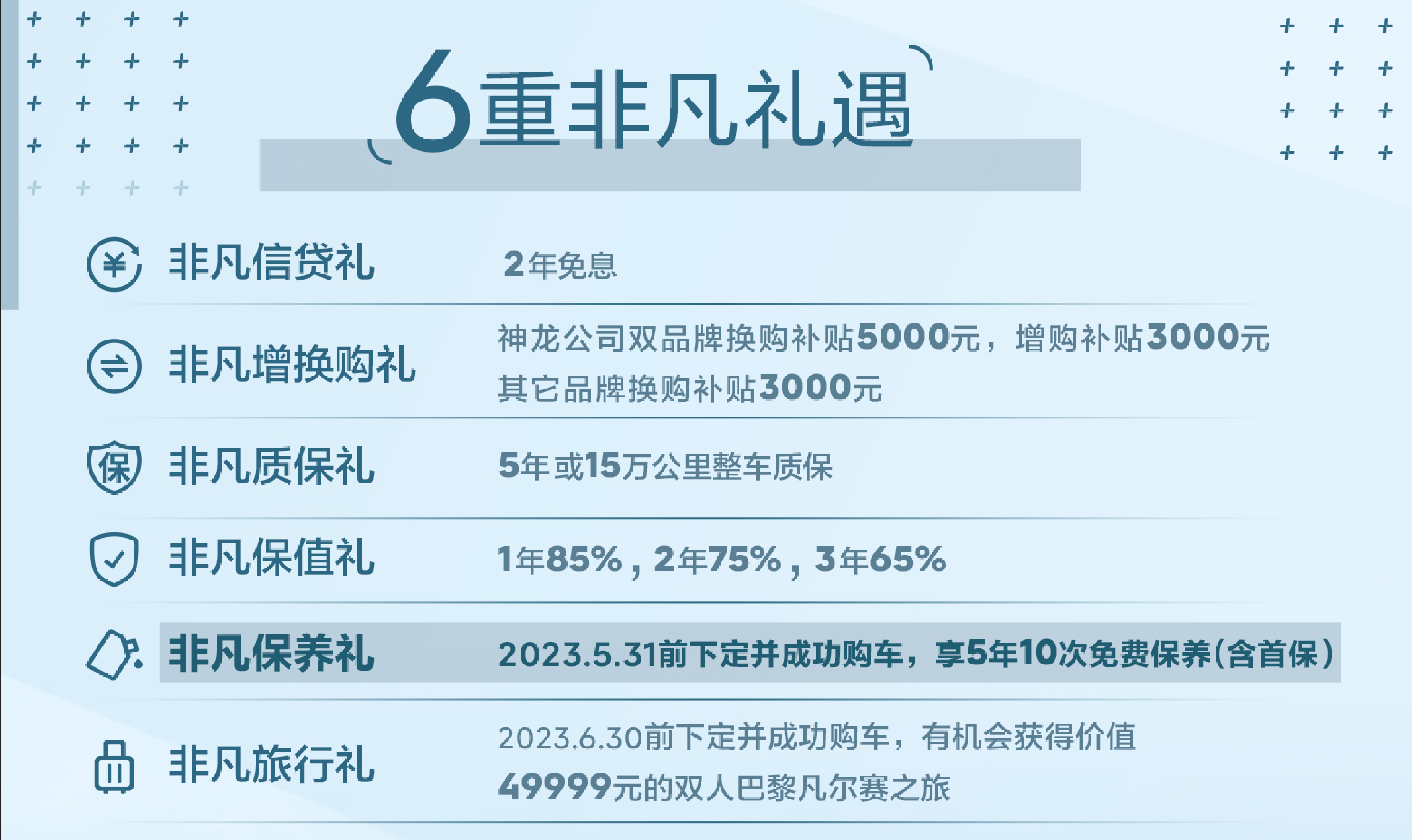 +1元不止于全系配置大放送,东风雪铁龙还为客户带来包括非凡信贷礼、非凡增换购礼、非凡质保礼、非凡保值礼、非凡保养礼、非凡旅行礼在内的6重非凡礼遇,让客户购车更轻松,换车更超值,用车更放心,养车更省心。实现品质感升级,价值感升级,奢享“凡尔赛式的”浪漫生活。