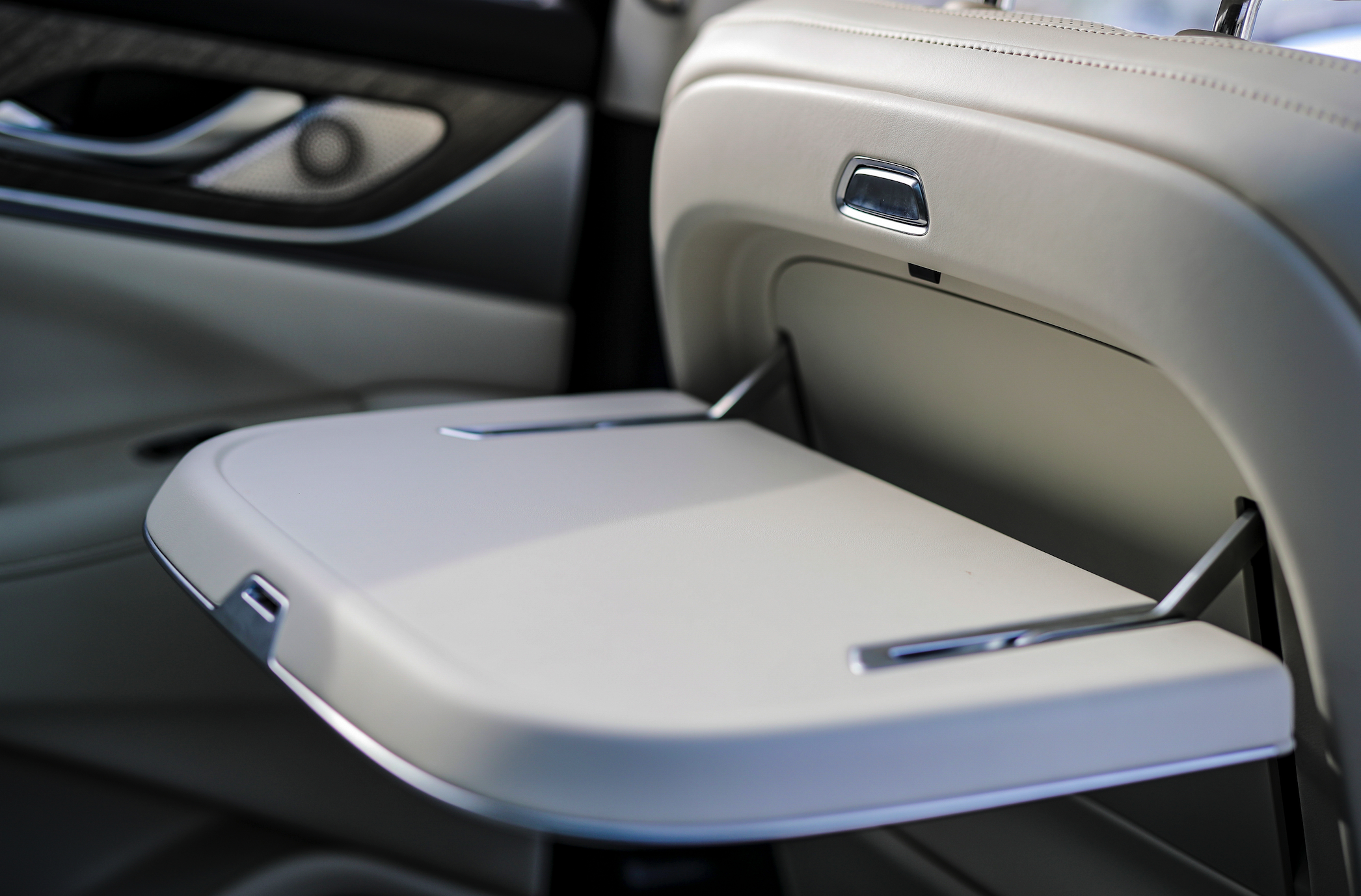 再者,蓝山也没有忘记给中排用户配备小桌板,只是该车仅选择在驾驶员后侧准备了小桌板,反之副驾一侧则没有,而这样的“区别对待”,实际得说到蓝山的“副驾女王座椅”。