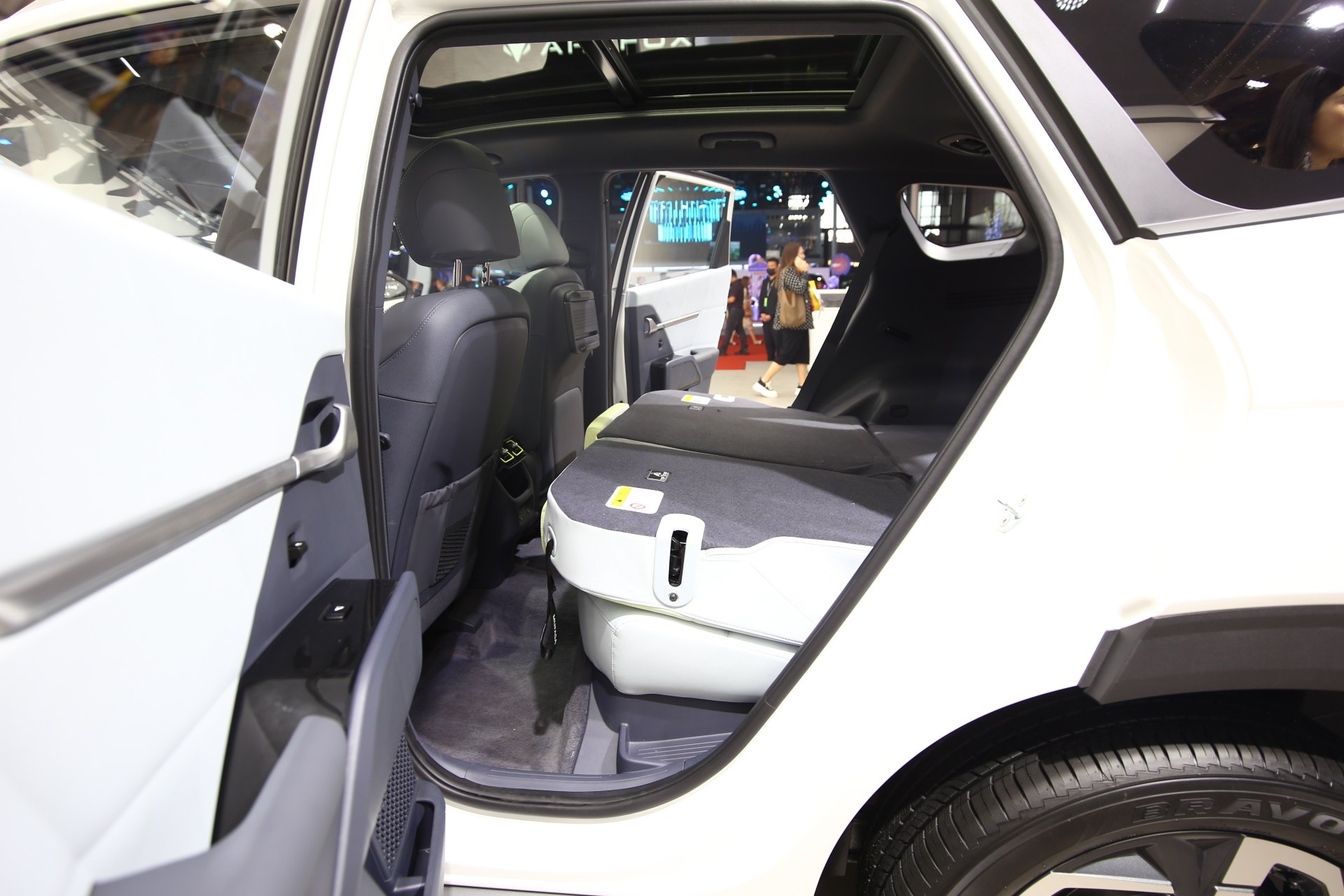 后排还提供了空调出风口、储物格、两个Type-C充电口,尾箱还有有12V 120W的点烟器接口,以及220V的插座。