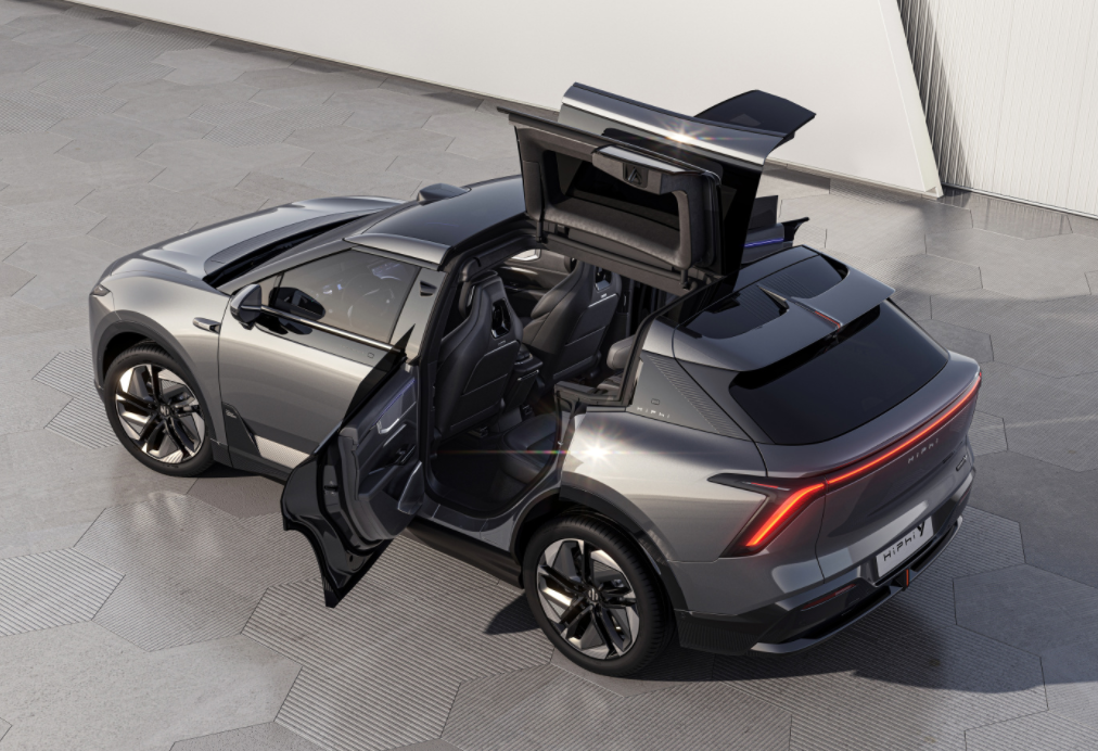 车身侧面,高合HiPhi Y取消了HiPhi X上极具辨识度的对开门设计,但保留了高合车型独创的车顶展翼门设计。在教授看来,高合HiPhi Y取消对开门设计显然是明智之举。