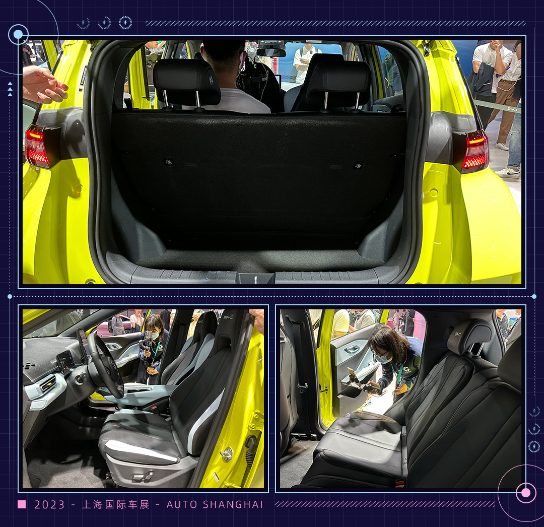 尺寸方面,海鸥的长宽高分别为3780/1715/1540mm,而得益于纯电平台四轮四角的设计,其也压榨出了2500mm轴距,比零跑T03、欧拉白猫都要长,后排也是纯平地台,也就能获得更舒适的驾乘空间。