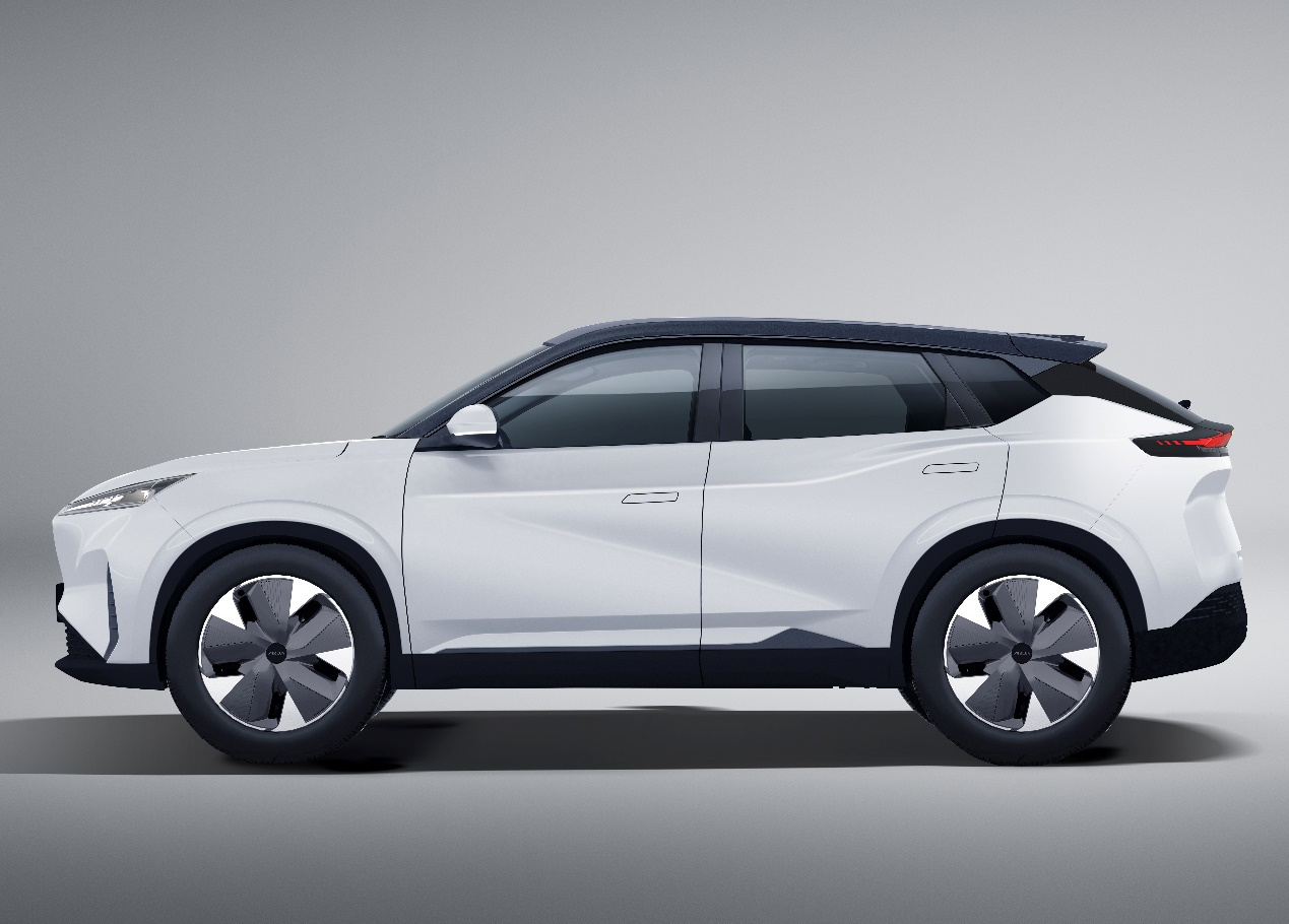 外观方面,车身尺寸4670mm*1885mm*1630mm,轴距达2775mm。整车风格极简科技、时尚凌动,车身整体线条流畅、比例匀称。符合纯电动车的设计趋势,车身采用减风阻、降滚阻的造型设计,有效降低百公里电耗。