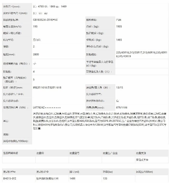 动力方面,该1.5T版本车型将会换装型号为BHE15-EFZ的1.5升涡轮增压发动机,和吉利缤越COOL的发动机为同款,传动系统预计仍将匹配7挡双离合变速箱。该动力总成最大输出功率为181马力(133千瓦),峰值扭矩可达290N·m,其动力性能仍完全可以满足日常代步出行。