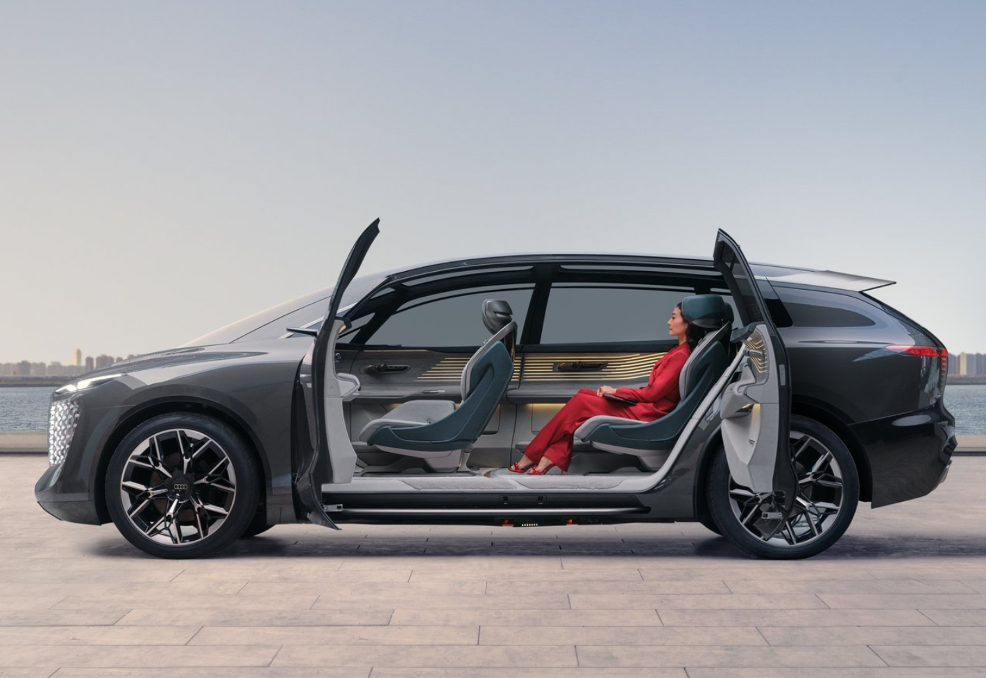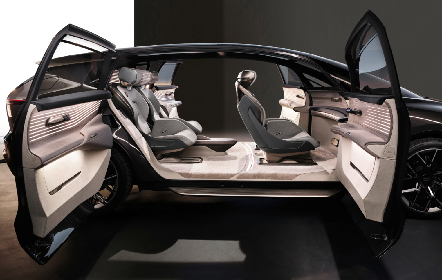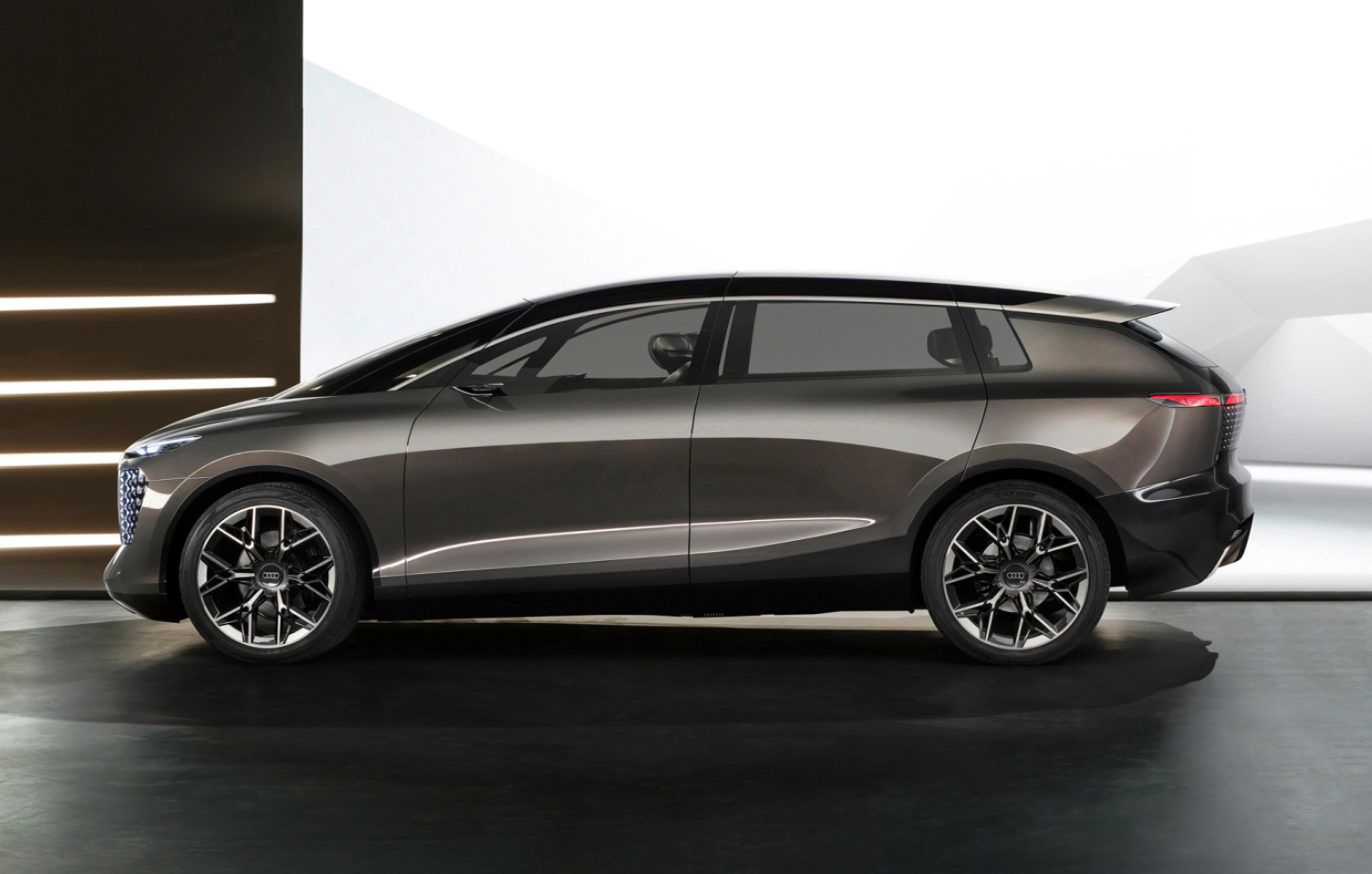 车身侧面,奥迪urbansphere采用了概念车惯用的对开门设计,并且取消了B柱。但乘客上车时座椅将向外旋转,充满了仪式感。只是不知道这些设计在未来真正量产时还能保留下多少。