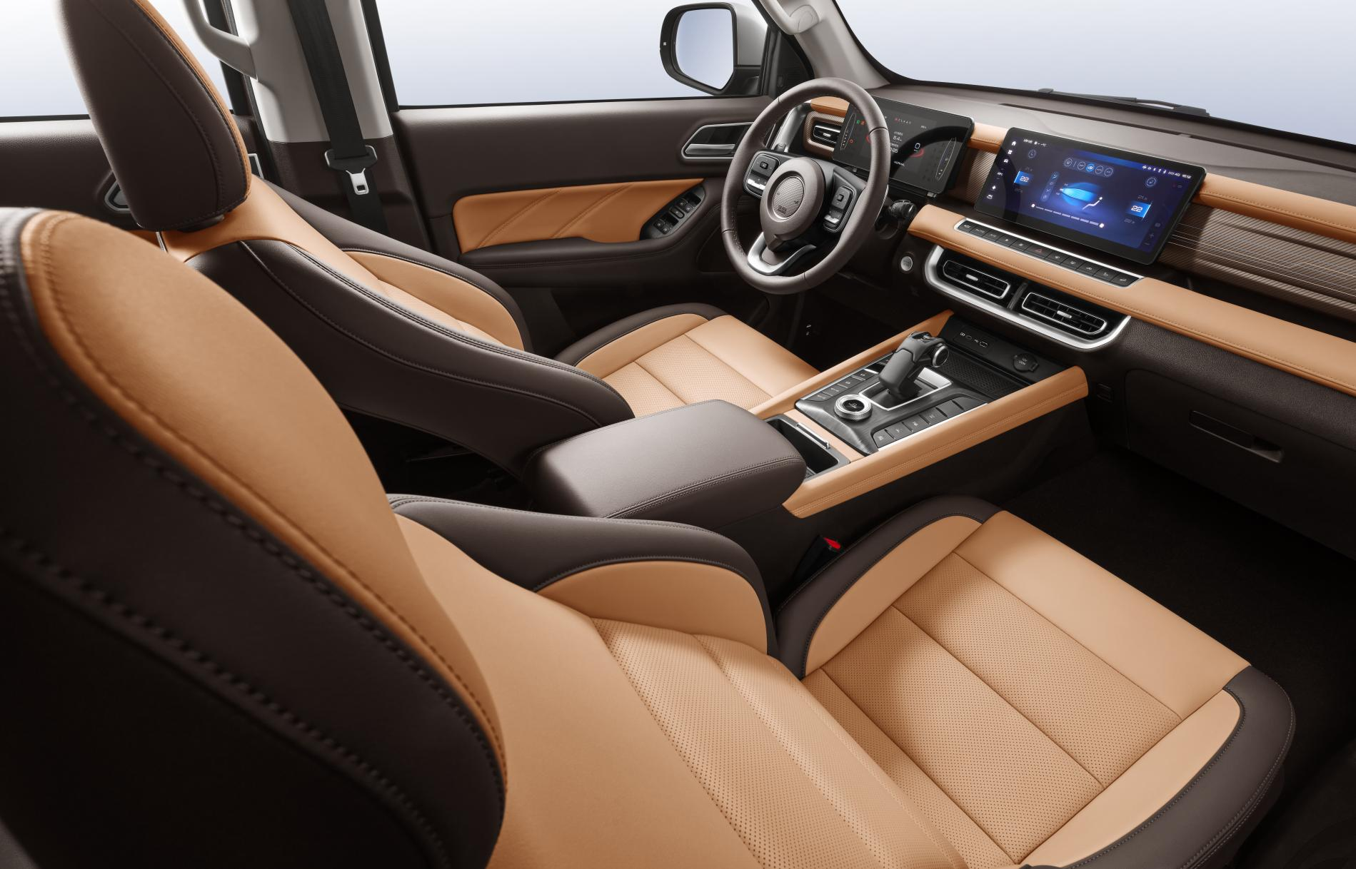 豪华科技新体验。2023款乘用炮采用全新精致科技风内饰,大面积软质包覆、7英寸彩色液晶仪表+12.3英寸智联触控屏双悬浮设计、镭雕工艺发光装饰板,科技感爆棚。此外,仪表板左右增加大储物盒,增加储物空间,同级领先。