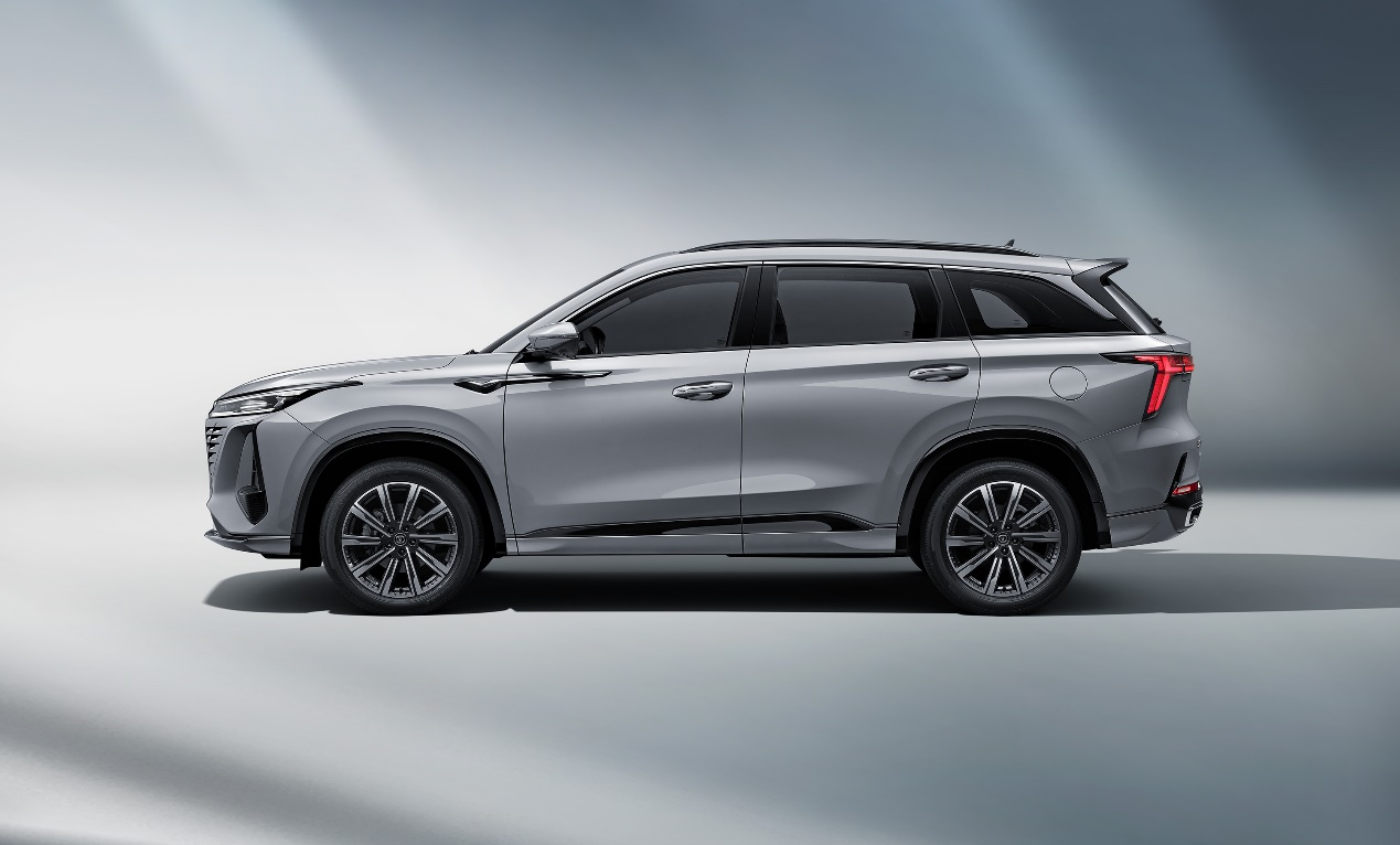 外观部分,全系采用全LED组合前大灯,解锁后大灯及贯穿式流光前位灯呈脉冲式闪烁,形成动感炫目的灯光效果;远近光由11颗高性能LED组成,照明性能强劲,光芒闪耀前路;贯穿式流光前位灯由61颗LED构成,通过镭雕实现流光璀璨的效果,凸显科技神秘的视觉感受;昼间行驶车灯由30+1+27颗白光LED组成,前转向灯由30颗LED构成,点亮效果更加醒目。全LED贯穿式组合后大灯,由62+132+62颗超红光LED构成,结构上采用竖直厚壁实现浮雕效果,犹如燃烧的火焰,不仅凸显科技感和未来感,更能在茫茫车海中显得尤为独特。侧面灯带激光雕刻透光纹理彰显尾灯律动、深邃;制动灯、后转向灯分别由26颗和8颗高性能LED组成,点亮效果更加醒目。