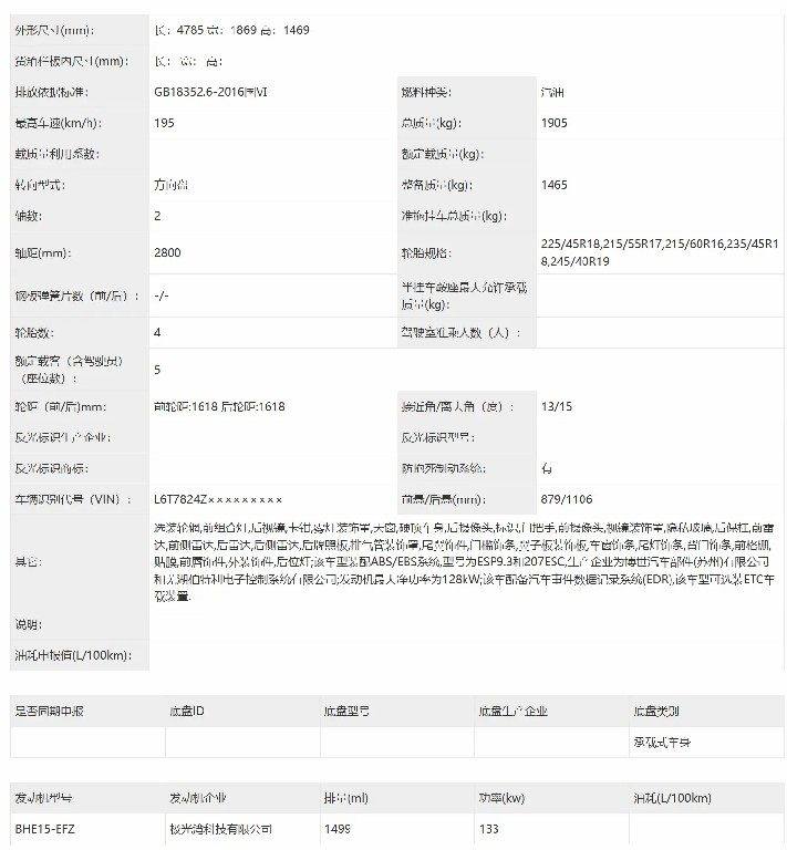 但是由于其他竞品的大招频出,星瑞可能并不满足于现状,想要推出性价比要更高的1.5T车型占据更多市场份额。此前,该车型已经在工信部申报中曝光。