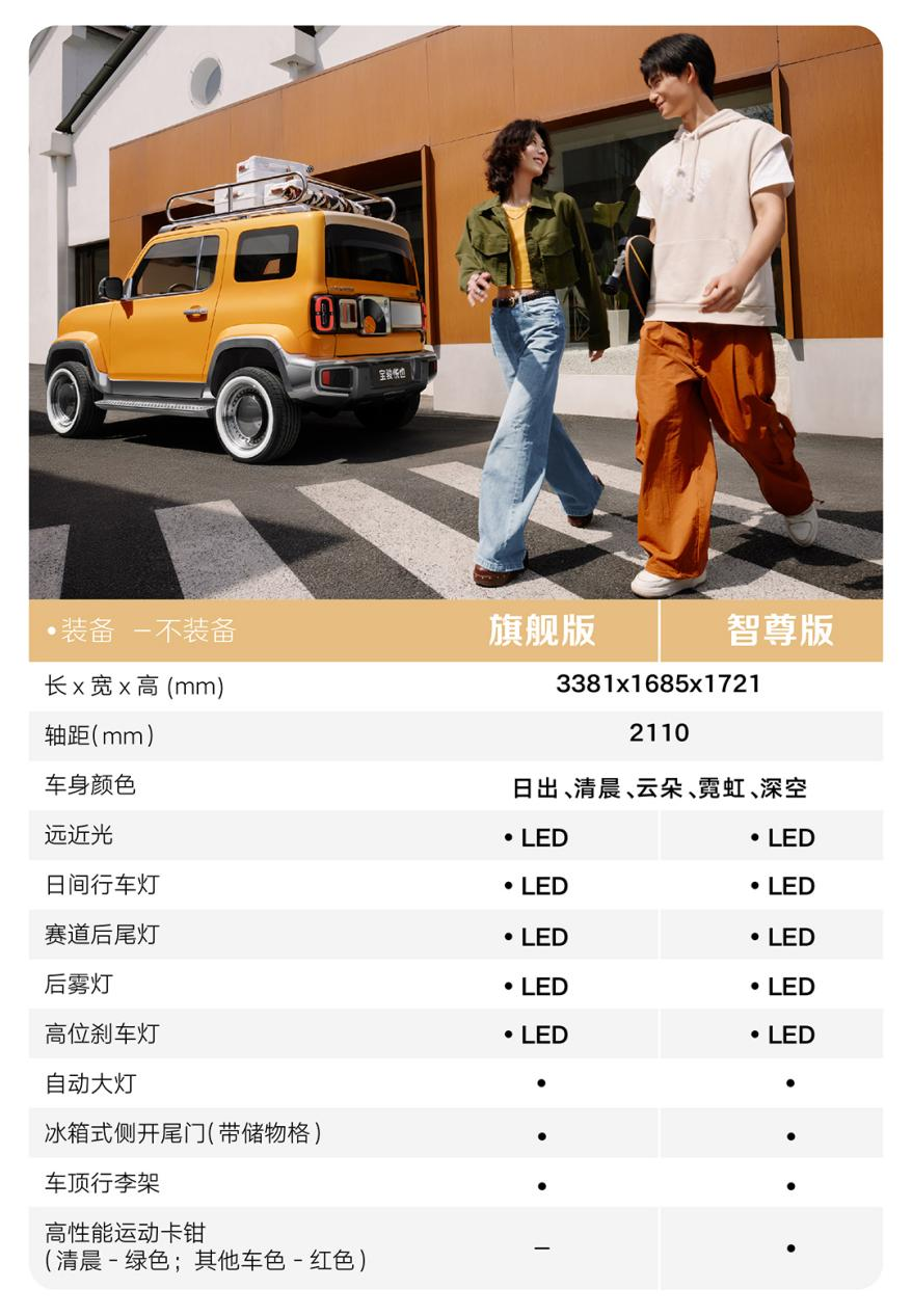 外观造型上,宝骏悦也独特造型搭配日出、清晨、云朵、霓虹、深空5种年轻车色,为城市玩家提供更多个性选择。整车全系标配LED城市斑马自动前大灯及赛道后尾灯,聚光易辨识。此外,还有冰箱式侧开尾门、标配车顶行李架等新潮设计,拓展更多玩乐可能;智尊版在此基础上新增高性能运动卡钳,满足个性化装饰和运动潮玩的需求。