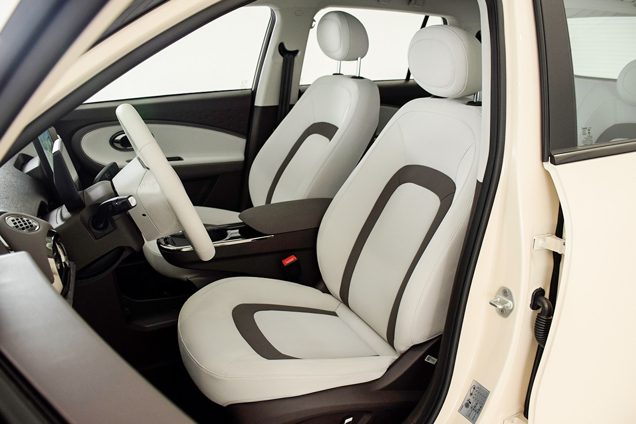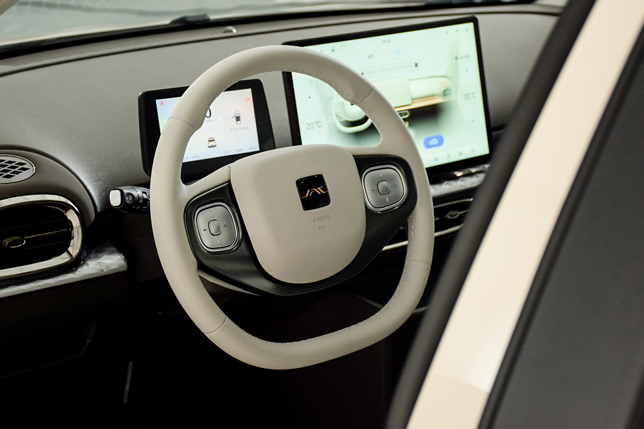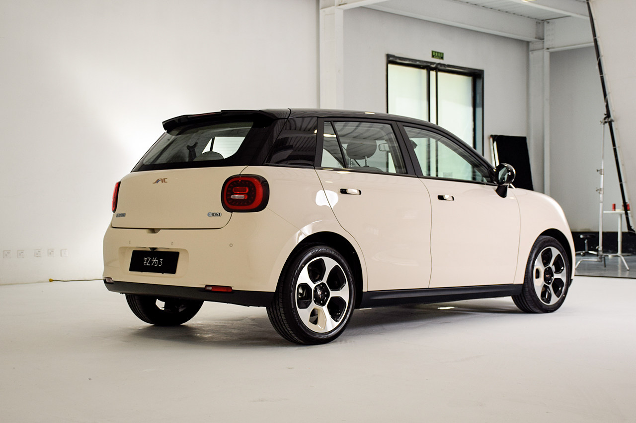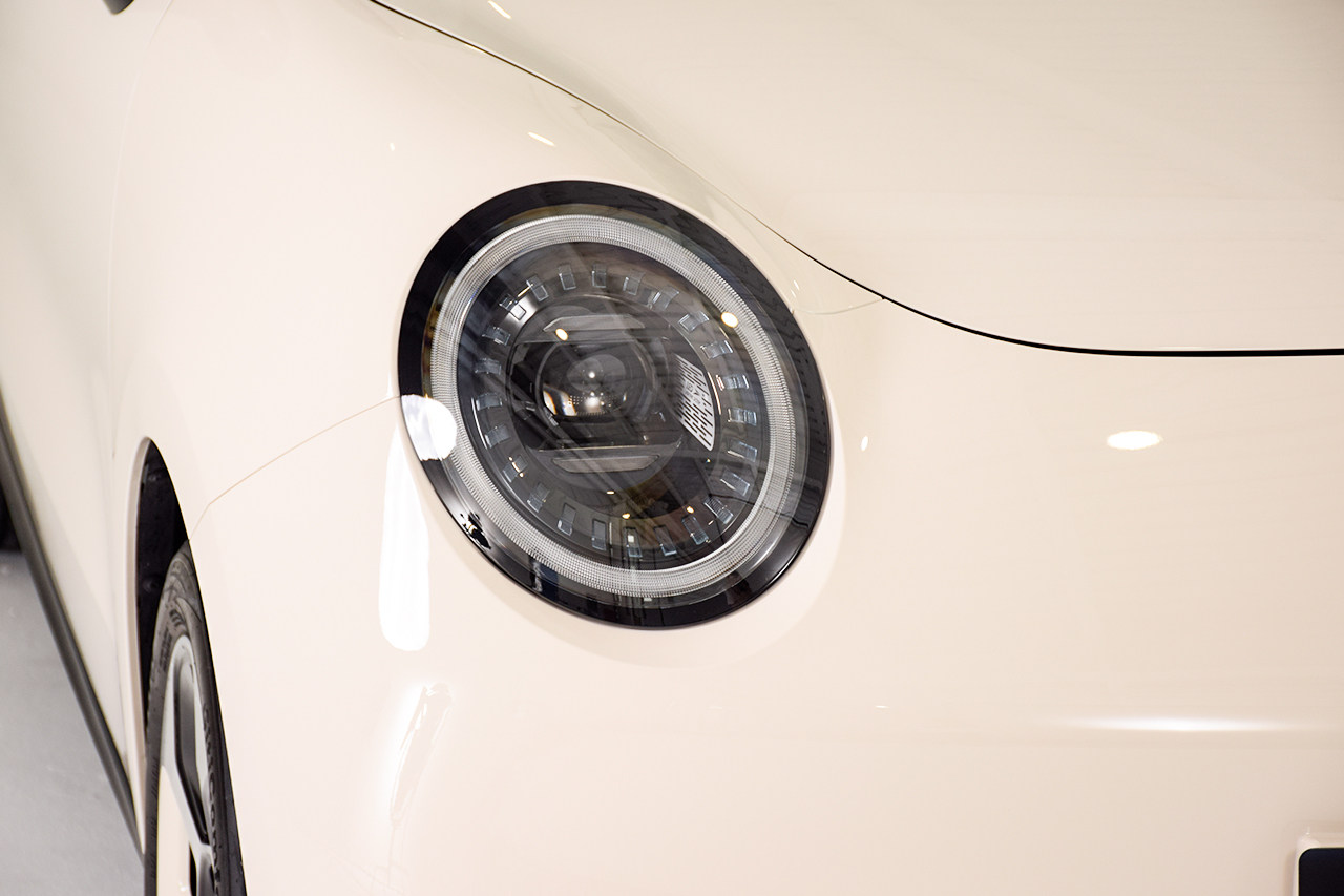 外部细节方面,我们可以看到钇为3有隐藏式门把手、复古造型大灯,快充口和慢充口则被安排在了前翼子板上。整体来看,钇为3外观设计完成度很高,风格很统一,这种可爱、圆润风放在城市代步小型车中属于老少通吃的类型,很有亲和力,容易被消费者接受,毕竟谁会拒绝“可爱”呢?
