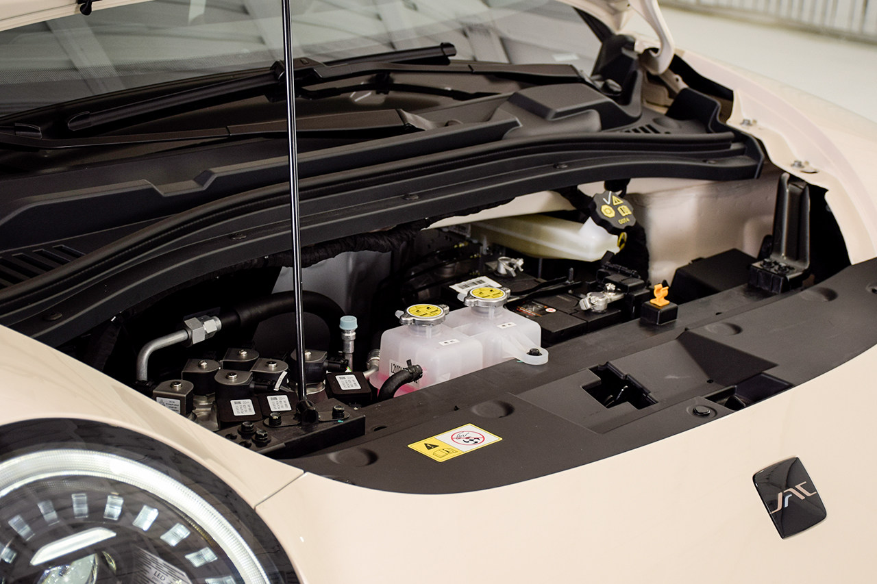 目前发布预售的车型在动力部分有70kW和100kW两种版本,全部为前置前驱布局,其中70kW版本搭载了能量为41kWh的磷酸铁锂电池,可以给用户提供CLTC工况下405km的续航能力,最高时速是150km/h;而100kW则搭载能量为51.5kWh的磷酸铁锂电池,CLTC工况续航能力为505km,最高时速同样为150km/h。