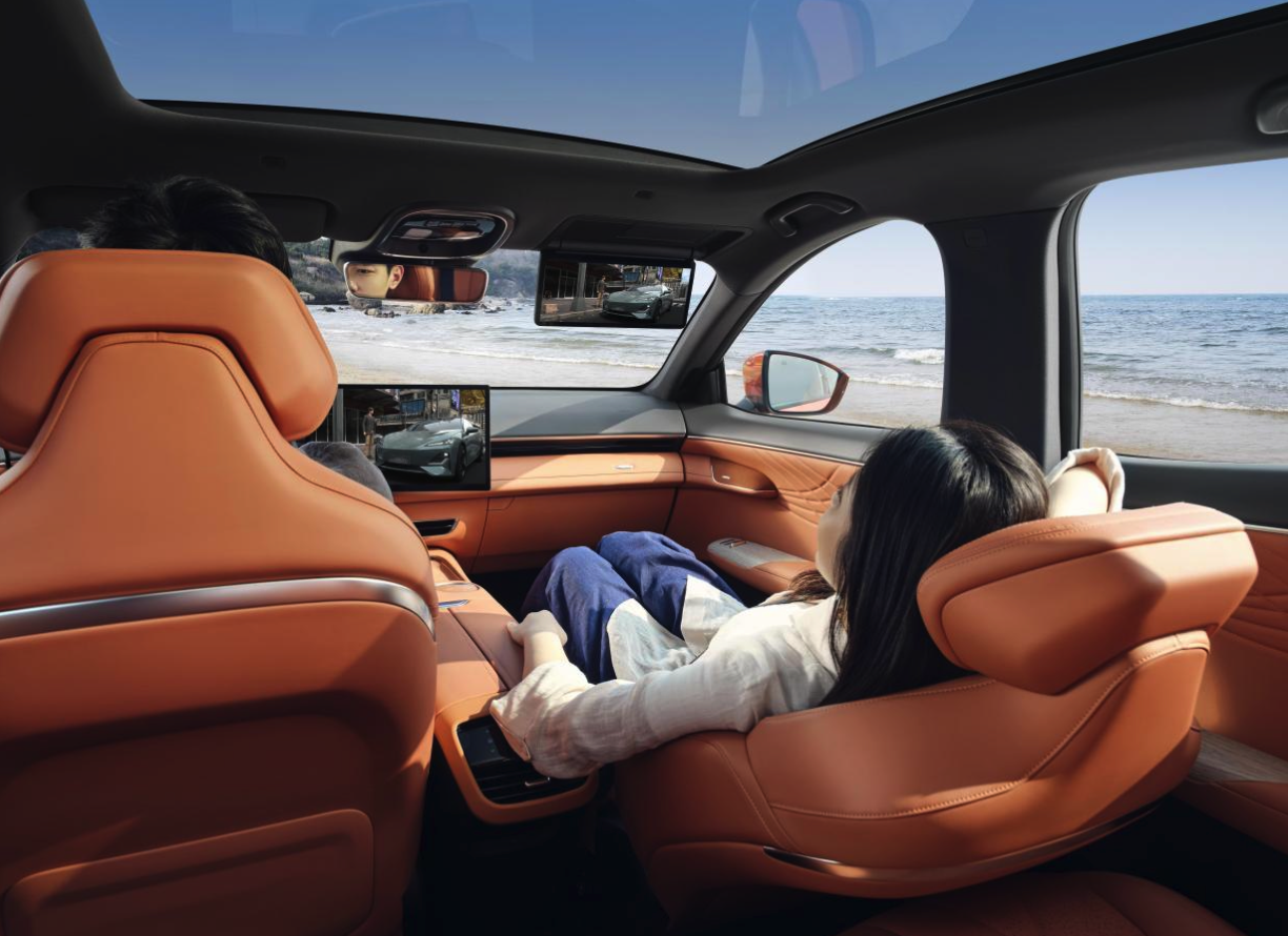 在此基础上,深蓝S7基于副驾女王座椅还作出了进一步的独特体验创新,相比于现时多数车型在中控台上为副驾单独准备一个娱乐屏,深蓝S7则是选择在遮阳板位置装配了12.3英寸屏幕,使得用户在享受舒适躺姿时也能获得不错的观影体验。