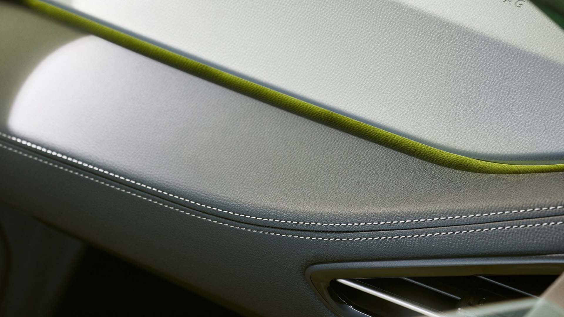 新车内饰没有太大的改进,主要是丰富了细节。屏幕中控屏的尺寸升级成12英寸,有着更强的科技感。同时车机界面也进行的更新,支持。同时新车还对中控面板及门板的材质进行了提升,加入了更加精致的缝线工艺覆盖和特殊的门板压花,门饰和座椅套上使用超细纤维材料Artvelours Eco更多柔软触感的表面,更舒适感受,档次感有着显著的增强。