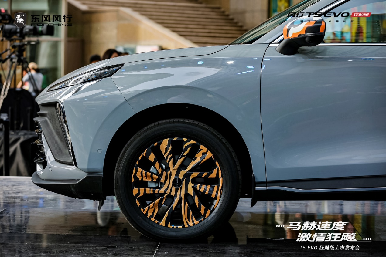 T5 EVO狂飚版采用了狮吼式前脸,威武凶猛的视觉张力扑面而来,灵跃冲刺式腰线贯穿车型侧面,呈现出蓄势待发之势,略显溜背的流线弧度设计,也展现出极强的运动姿态,极具张力。猎兽战斧轮毂,宛若猛兽出击,享受狂飚的快感。狂风声浪式四出排气,气势十足,让生活随时“飚”起来!