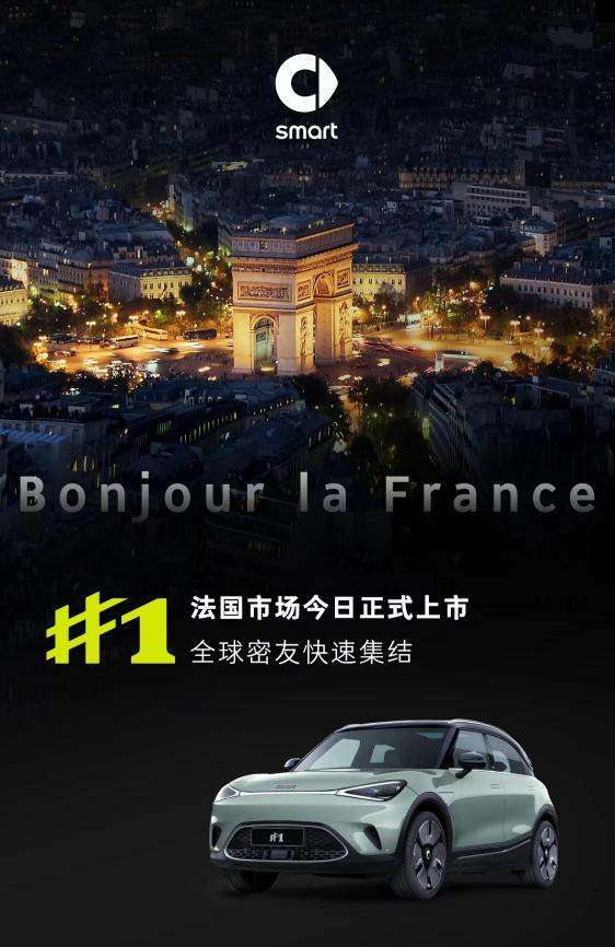继在德国市场开启交付后,smart精灵#1今日在法国市场正式上市并将开启首批用户交付。伴随欧洲销售服务网络逐步完善及交付效能不断提升,smart精灵#1随后将在意大利、荷兰、葡萄牙、西班牙和瑞士等欧洲市场也将按计划逐步上市。在东南亚市场,smart精灵#1预计于今年四季度率先在马来西亚上市交付。将无限灵感注入运营,smart正在持续拓展全球其他高潜市场。