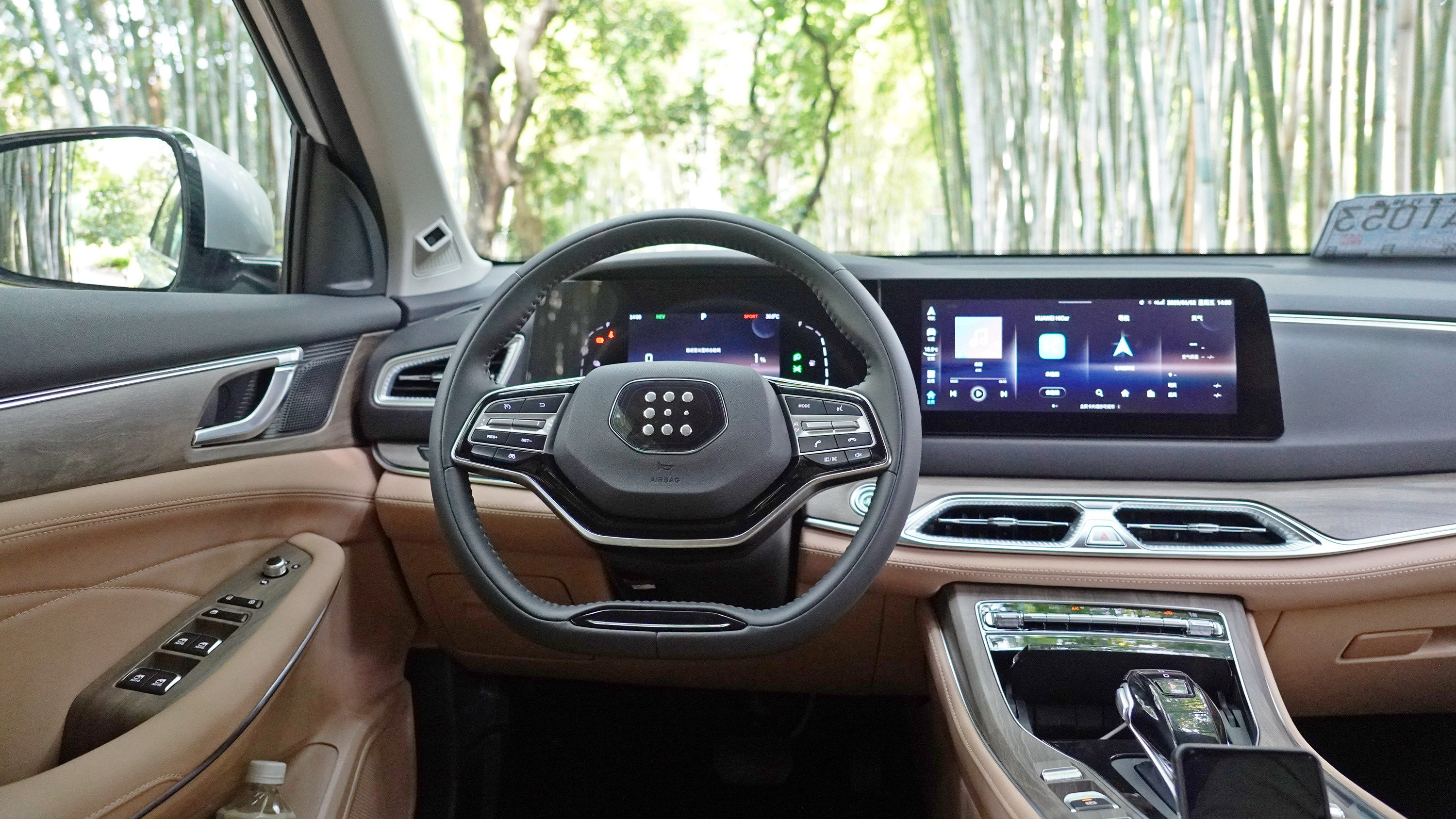 车内采用了大量的软质、皮质材料包裹,做工用料颇为考究,配色方面则采用了更加偏向家用的胡桃棕。