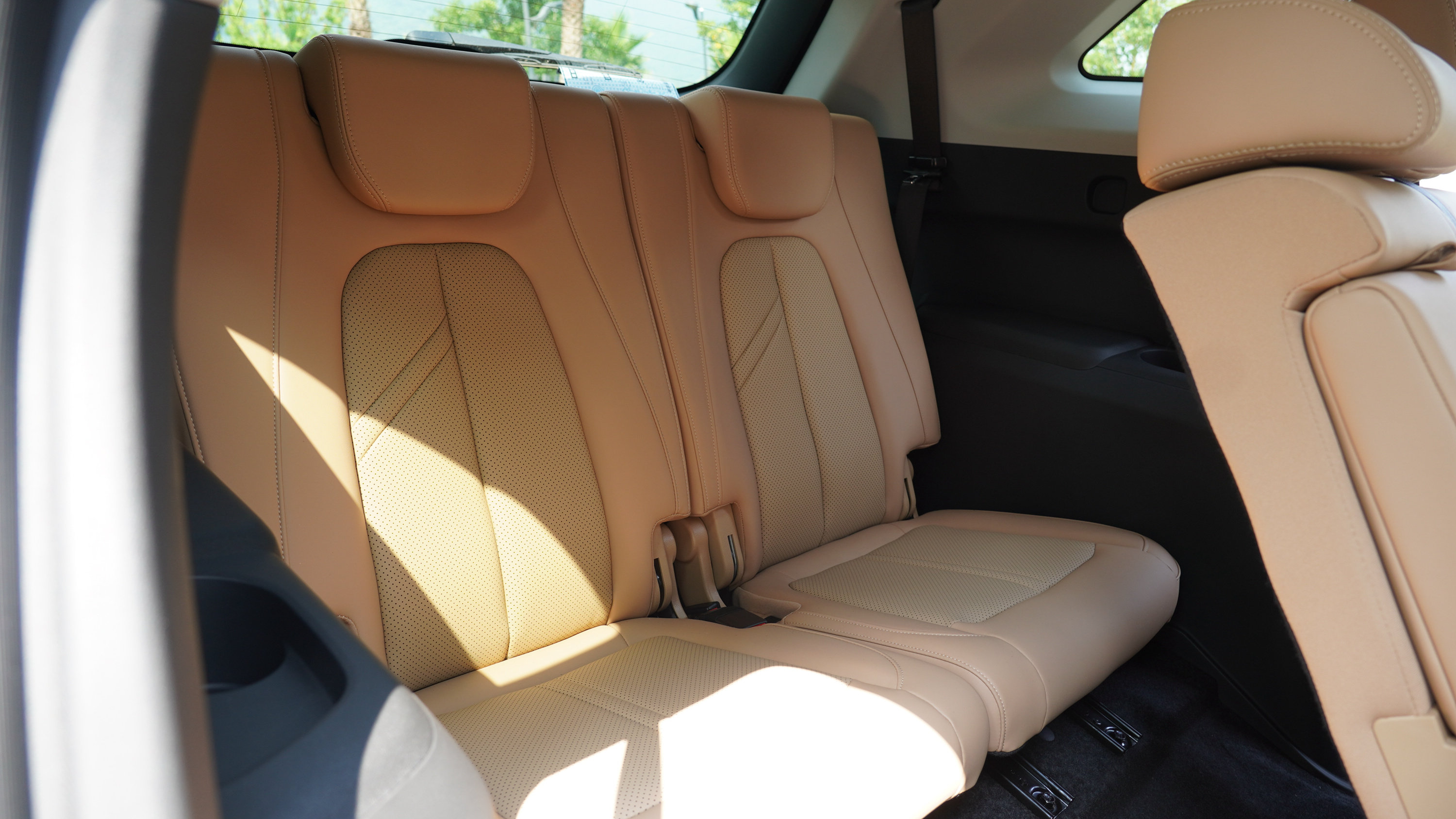 我们从蓝电E5“5+2”的座椅布局设定上就能够看得出来,这款车型大多数用车场景下仍然是以5座为主。尽管如此,它的第三排座椅并不单薄,在短途乘坐的情况下也依然保留了一定的舒适性。