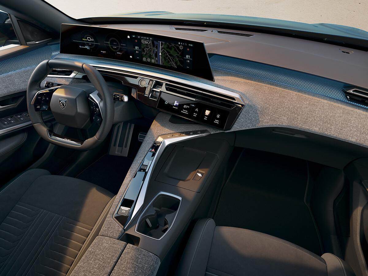 从内饰官图来看,全新标致3008已换上最新尺寸达21英寸的曲面双联屏,搭配空调出风口处的触摸屏,将支持更多车内功能操作,继续配备扁平化的双辐式方向盘。