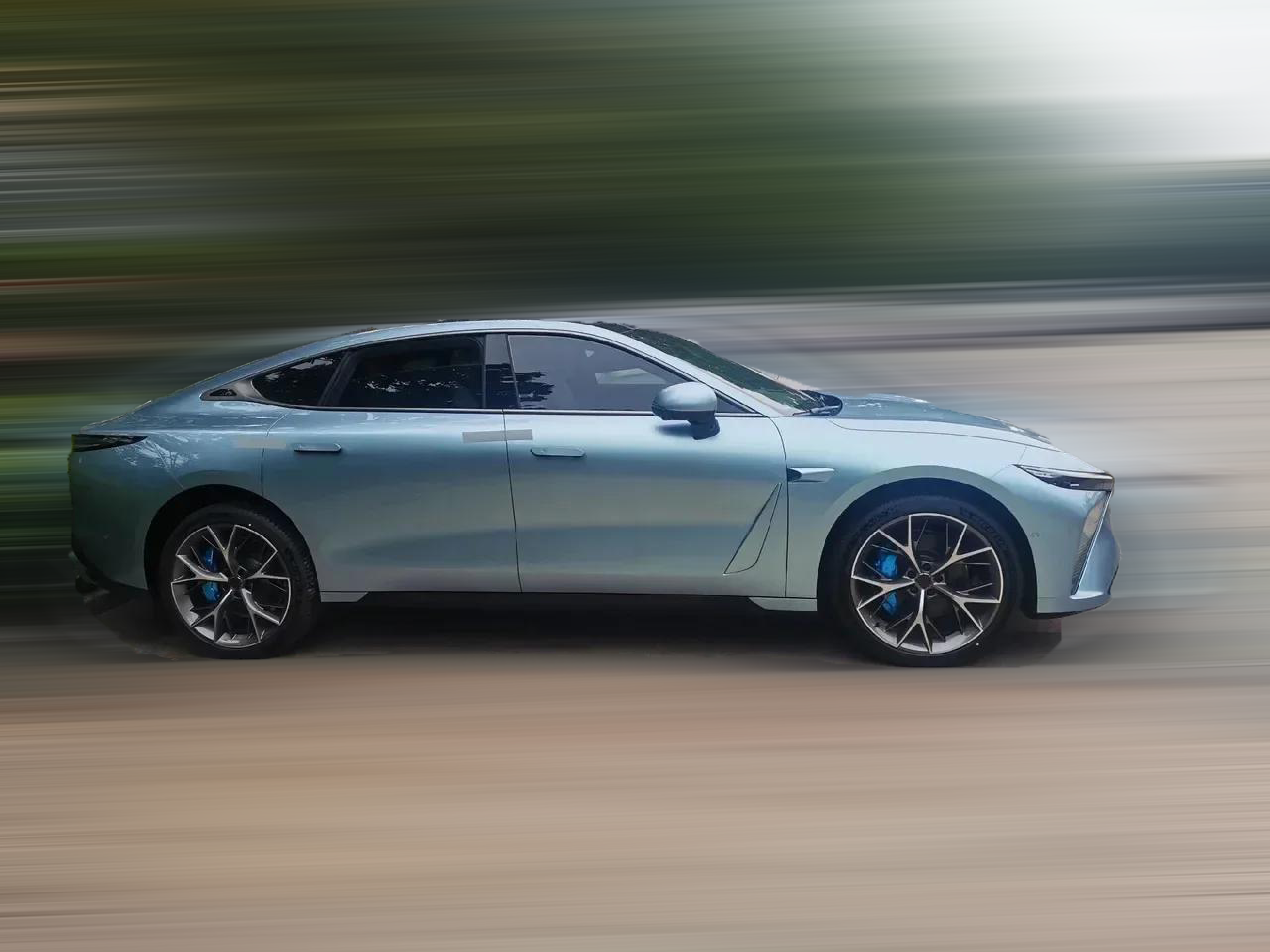 新车前脸采用类似蝴蝶理念的家族式造型,搭配主流电动车的封闭式中网加贯穿式灯带;车身侧面则加入了酷似导风口的翼子板以及黑化侧裙,配备有隐藏式门把手,整个造型与岚图追光有着如出一辙的设计,都是采用溜背造型。